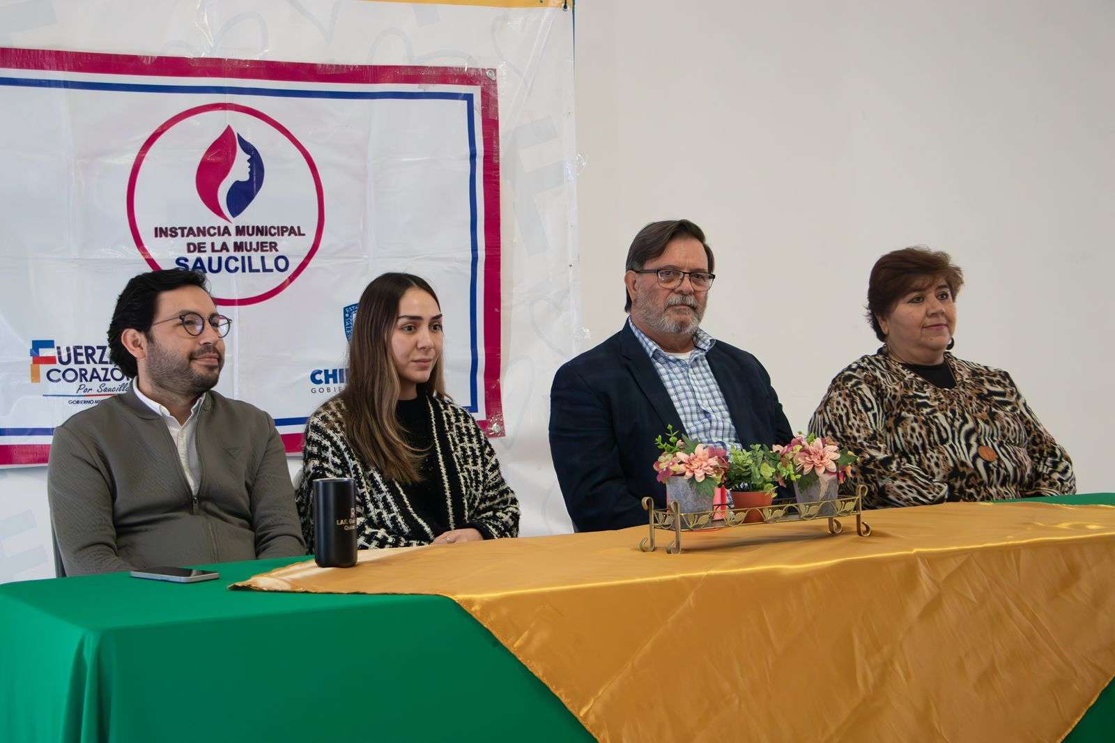 En el presídium se contó con la presencia de Guillermo Quintana, director de Emprendimiento y Desarrollo Económico; Margarita Ponce, directora de Desarrollo Económico; Mireya Salazar, titular de la Instancia Municipal de la Mujer; y Luis Arturo Chavarría, coordinador de Gabinete, en representación del alcalde de Saucillo.