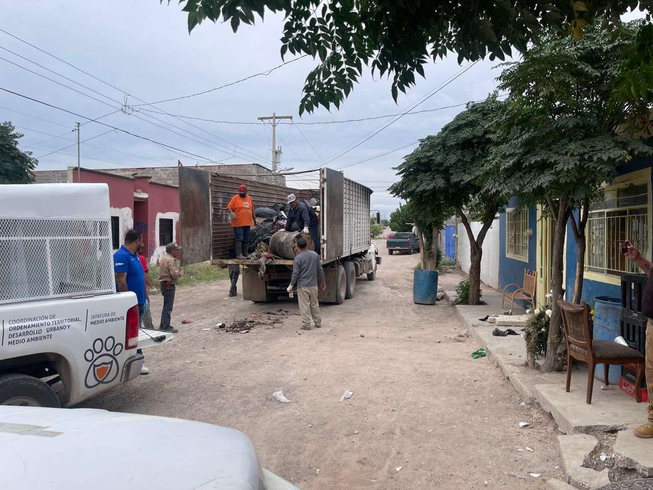 Delicias, Chih.- El Gobierno Municipal de Delicias, a través de la Coordinación de Salud, Protección Civil, Servicios Públicos y Medio Ambiente, implementó una nueva jornada del programa de destilichadero, con el que se retiraron alrededor de 10 toneladas de artículos en desuso en la colonia Laderas del Norte, contribuyendo a mejorar la limpieza urbana y la salud comunitaria. La coordinadora de Salud, Francisca Mercado Ávila, explicó que estas acciones buscan prevenir focos de infección y eliminar criaderos del mosquito transmisor del dengue.