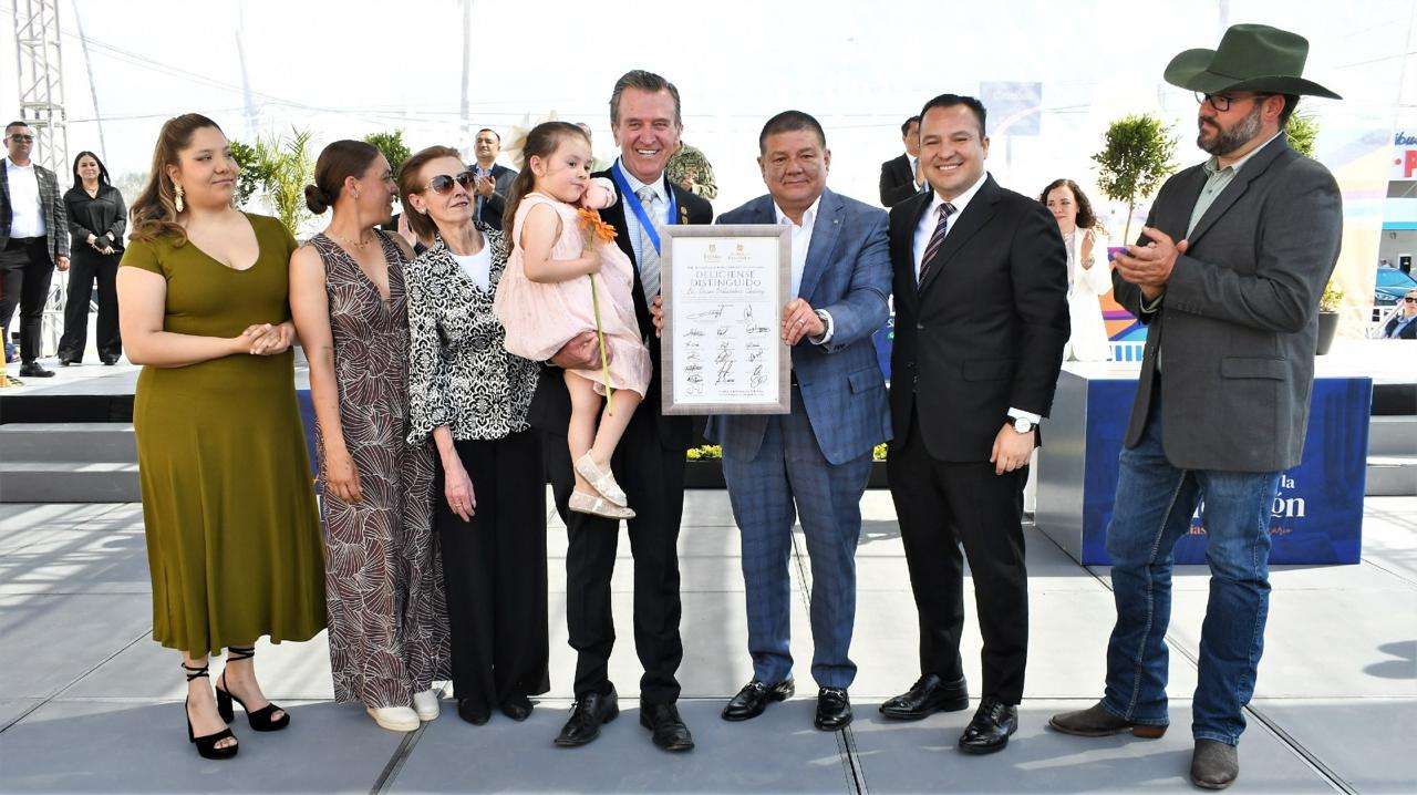 A nombre de la Gobernadora Maru Campos, el Fiscal General extendió un saludo cordial a todos los delicienses y en especial al galardonado: “recibe Óscar y toda tu familia, todo el reconocimiento, la admiración, y el respeto por tu labor en favor de Delicias y de Chihuahua”.