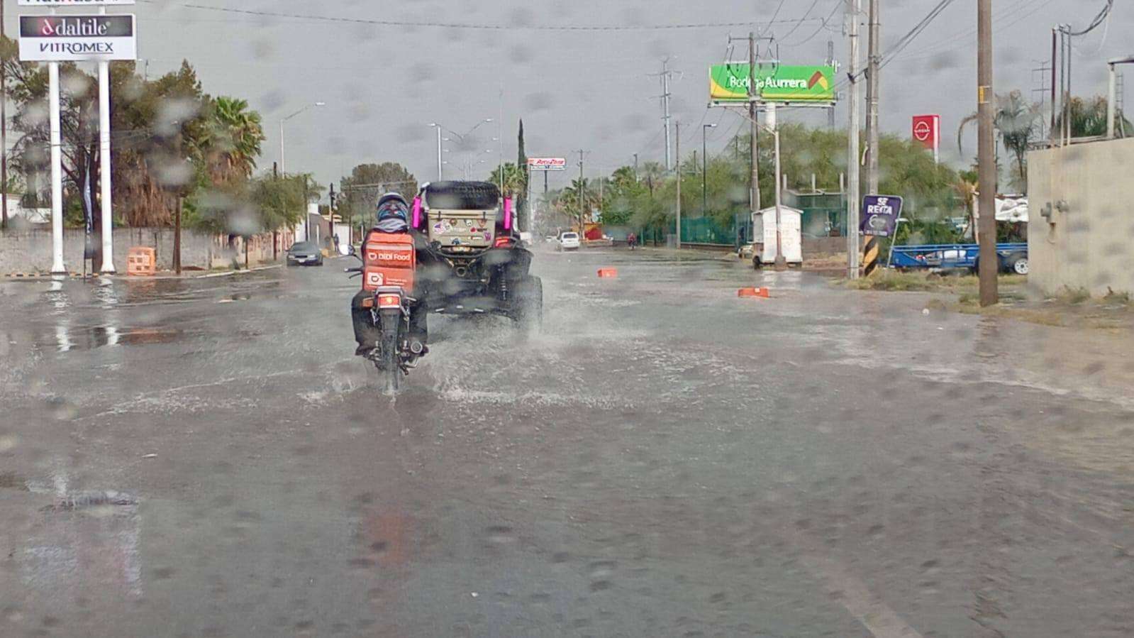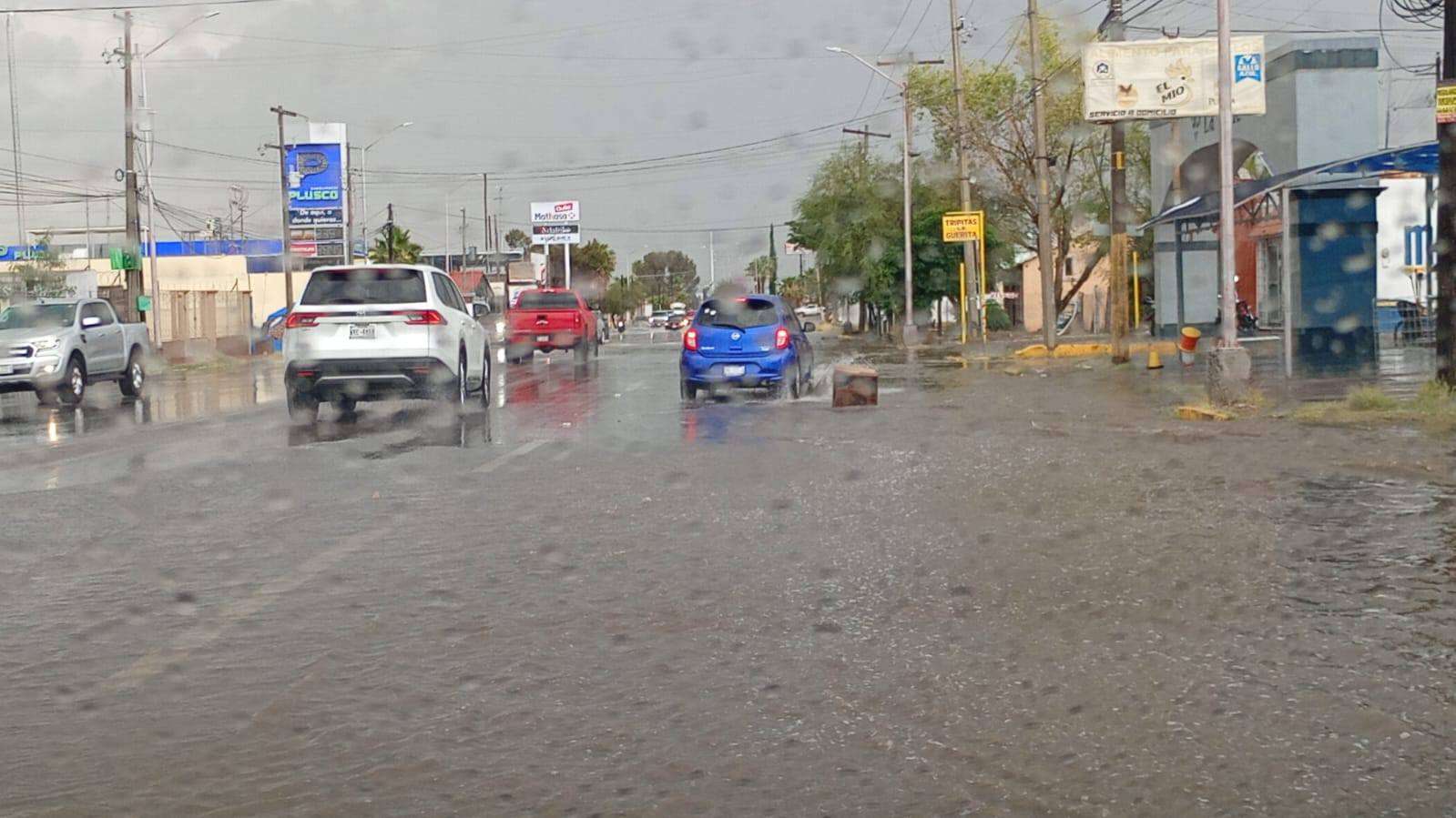 Delicias, Chih. - Una fuerte precipitación acompañada de granizo se registró la tarde de este sábado en Delicias. En cuestión de minutos, la intensidad del agua superó la capacidad de absorción en diversos sectores, lo que generó acumulamientos importantes que dificultaron el tránsito peatonal y vehicular en algunos puntos de la ciudad.