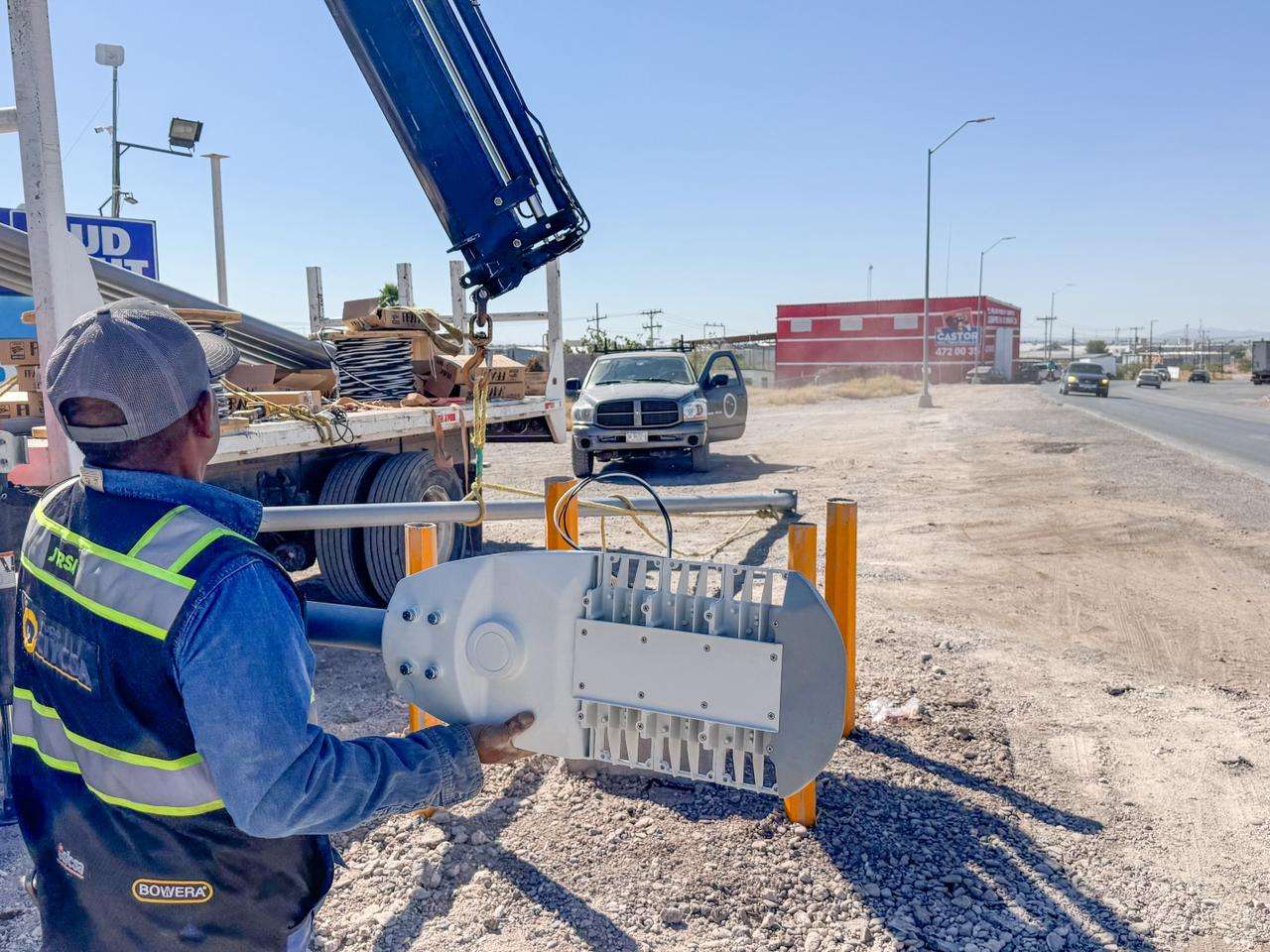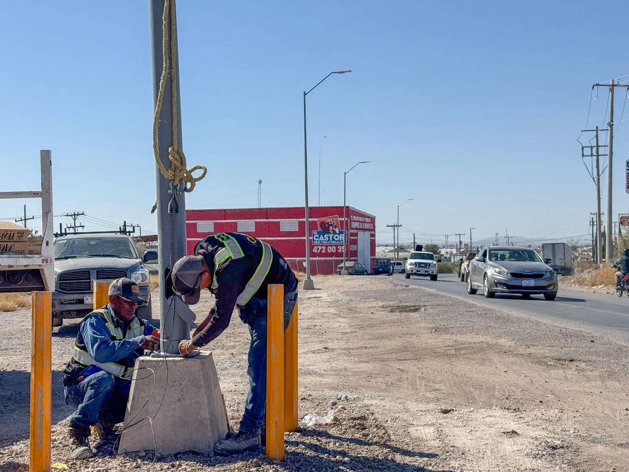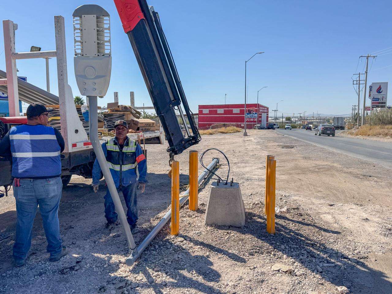 Un punto importante donde se encuentran las labores es en la avenida Tecnológico, desde el puente de Lotes Urbanos hasta el Instituto Tecnológico de Delicias, una zona donde la iluminación había sido insuficiente durante años.
