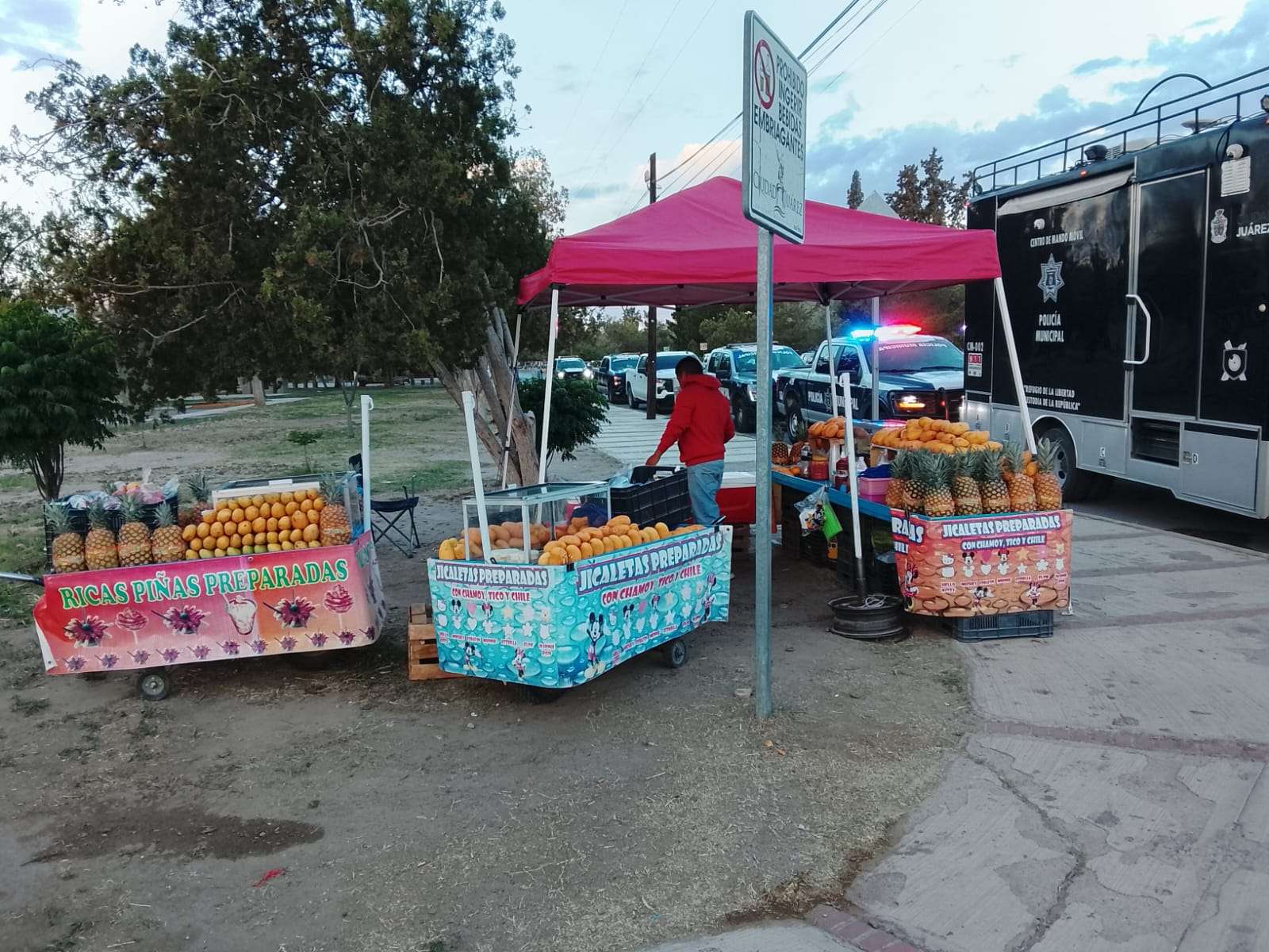 Desde temprana hora, el ambiente festivo comenzó a tomar forma con la instalación de asadores, discos para cocinar y un amplio despliegue de comida, donde muchas familias iniciaron la jornada con desayunos al aire libre, como parte de una de las tradiciones más arraigadas en la frontera.