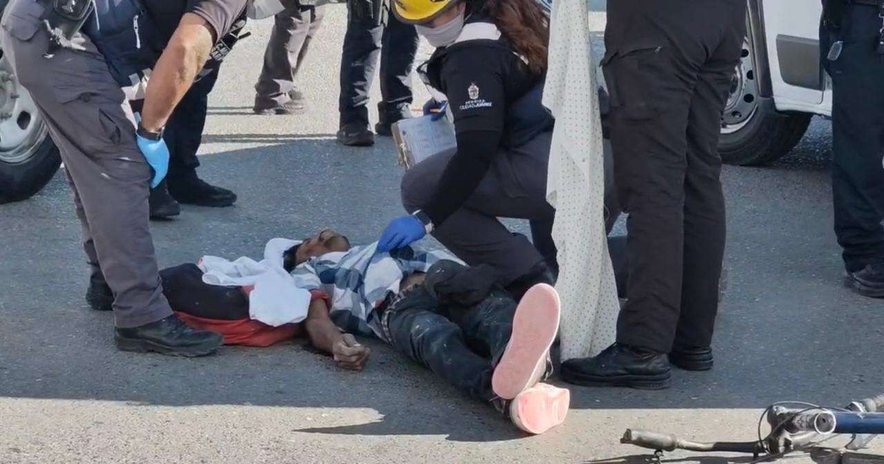 Ciudad Juárez.- Un ciclista de aproximadamente 40 a 45 años de edad quedó tendido sobre la vía pública tras ser atropellado en el cruce de la avenida Tecnológico y Ramón Rayón, en un punto cercano a la zona de Manuel Talamás Camandari.