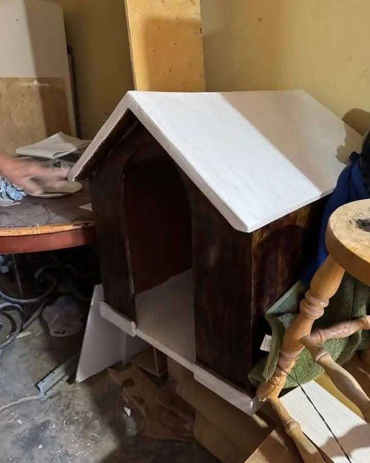 El adulto mayor elabora casitas para perritos y macetas hechas a mano, piezas que fabrica con dedicación y paciencia.