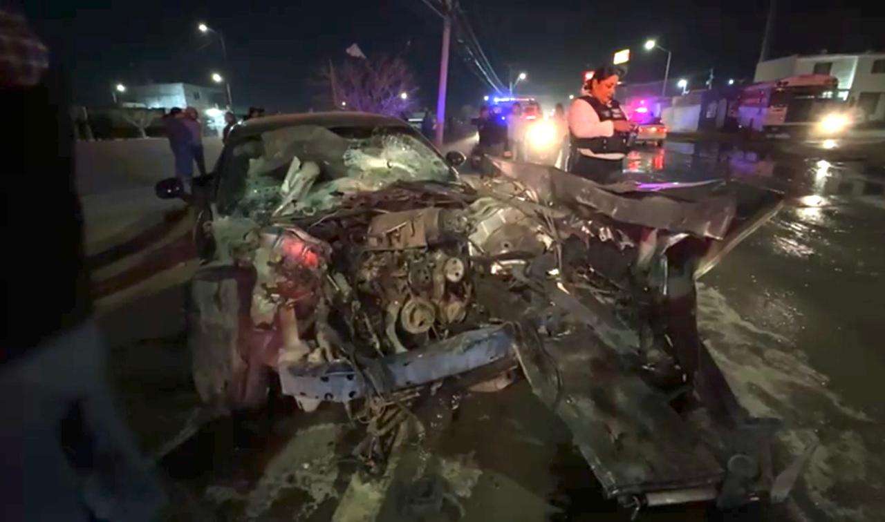 Ciudad Juárez.- Un fuerte accidente se registró en el cruce de Puerto Tarento y Desierto de los Leones, en Parajes de Oriente, donde los tripulantes de un vehículo particular, presuntamente en estado de ebriedad, realizaban maniobras peligrosas y terminaron impactándose de frente contra un autobús.