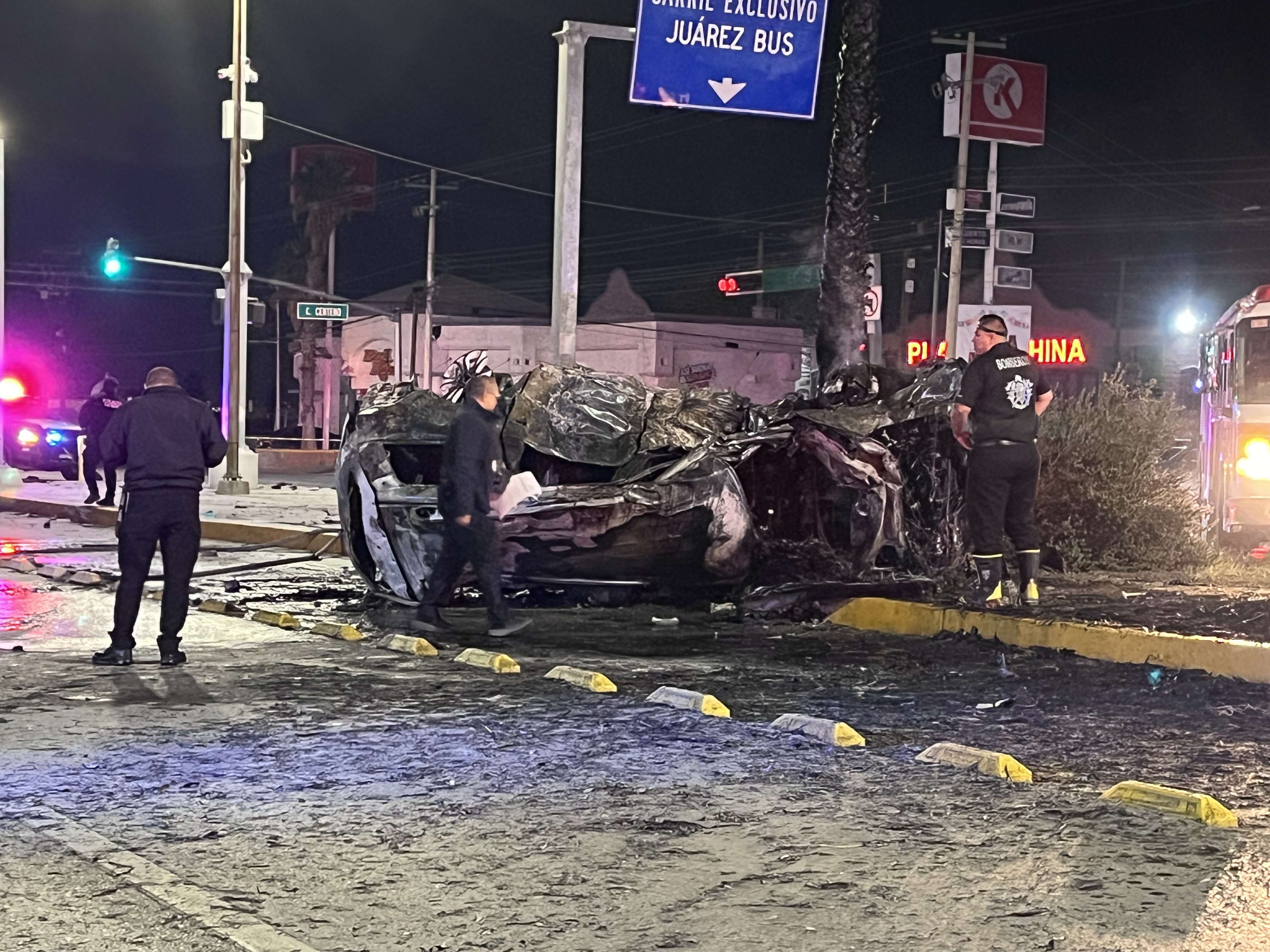 Ciudad Juárez.- Un fatal accidente cobró la vida de cinco personas durante la madrugada en el cruce de las avenidas Tecnológico y Centeno, dejando además una persona gravemente lesionada.