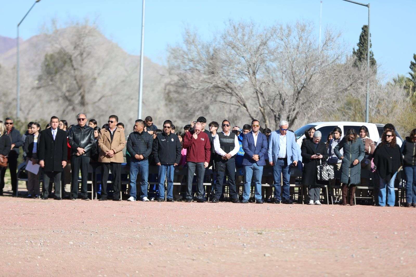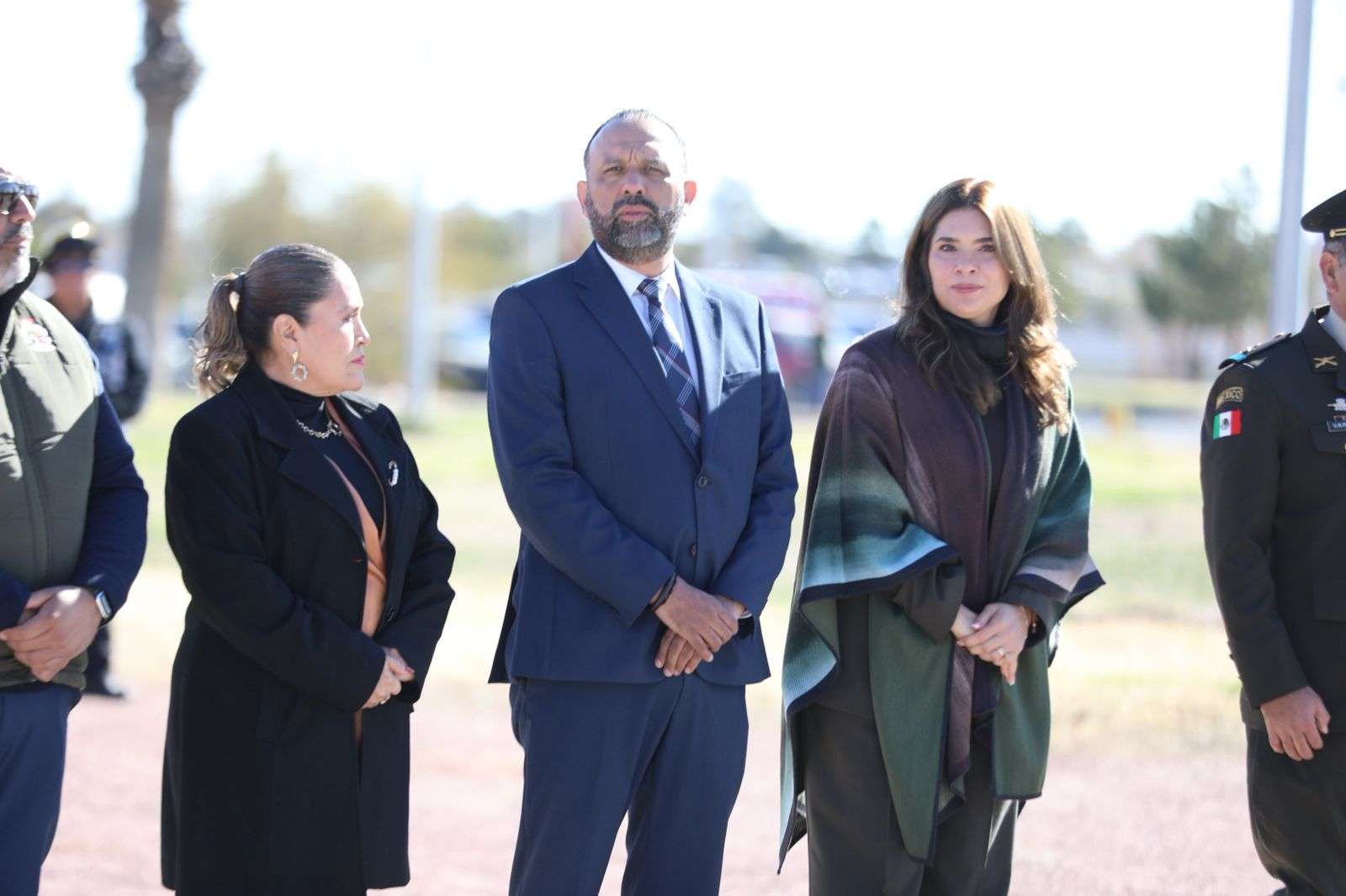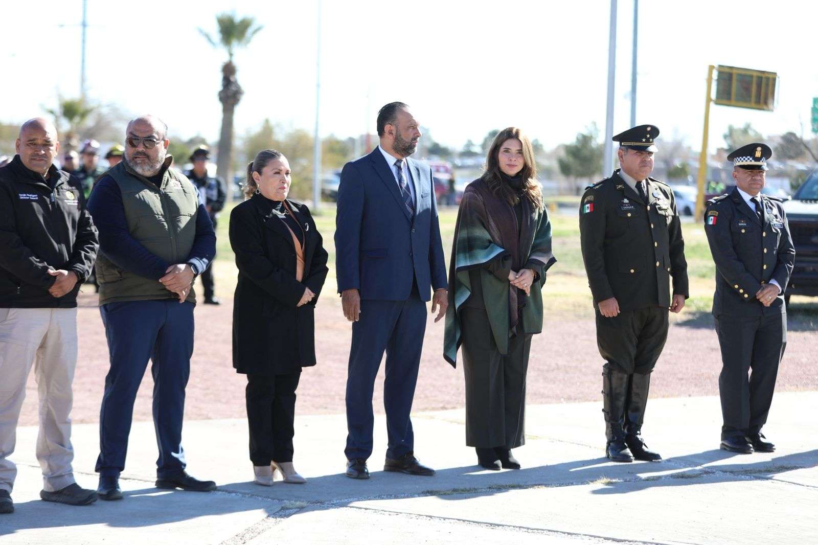 En el presídium estuvieron Rubí Enríquez, presidenta del Sistema para el Desarrollo Integral de la Familia del Municipio (DIF); Fermín Vargas González, comandante del Noveno Regimiento de Caballería Motorizado; César Díaz Gutiérrez, titular de la Dirección de Ecología; Sergio Rodríguez, director de Protección Civil; Víctor Sauceda, comandante operativo de la SSPM, Guillermo Alvídrez, director de Educación, así como la regidora María Dolores Adame Alvarado.