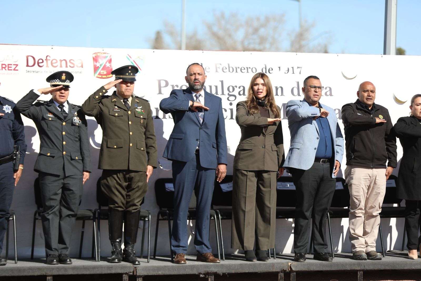 Ciudad Juárez.- En el marco del CIX Aniversario de la promulgación de la Constitución Política de los Estados Unidos Mexicanos y de la campaña Febrero, Mes del Ejército y Fuerza Aérea Mexicanos, el Gobierno Municipal llevó a cabo la Ceremonia de Izamiento de Bandera, como un acto cívico para fortalecer también los valores de legalidad, identidad nacional y reconocimiento a las Fuerzas Armadas.