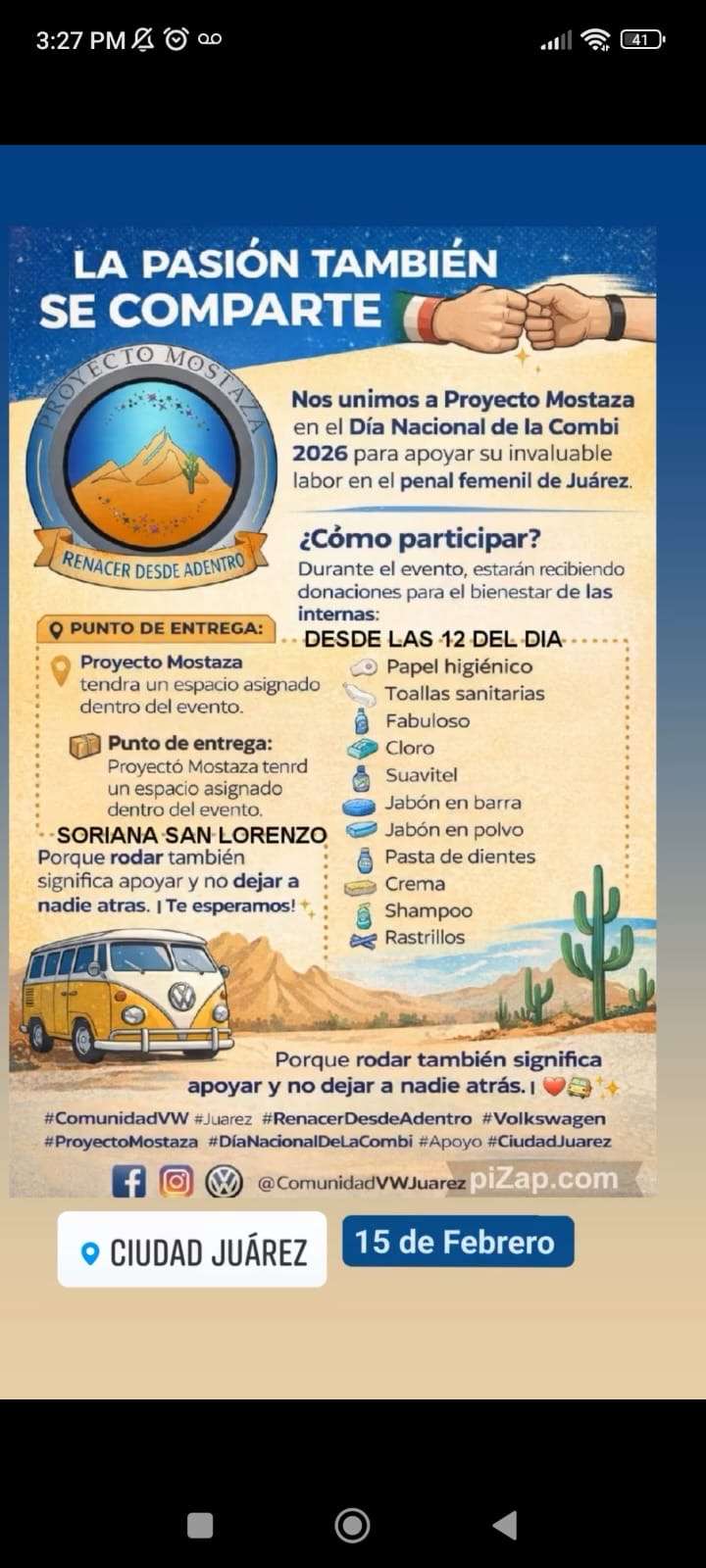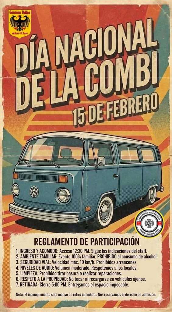 Ciudad Juárez.– Este domingo se llevó a cabo la conmemoración del Día Nacional de la Combi, fecha que se celebra cada tercer domingo de febrero en distintas ciudades del país con caravanas y exhibiciones de estos vehículos clásicos.