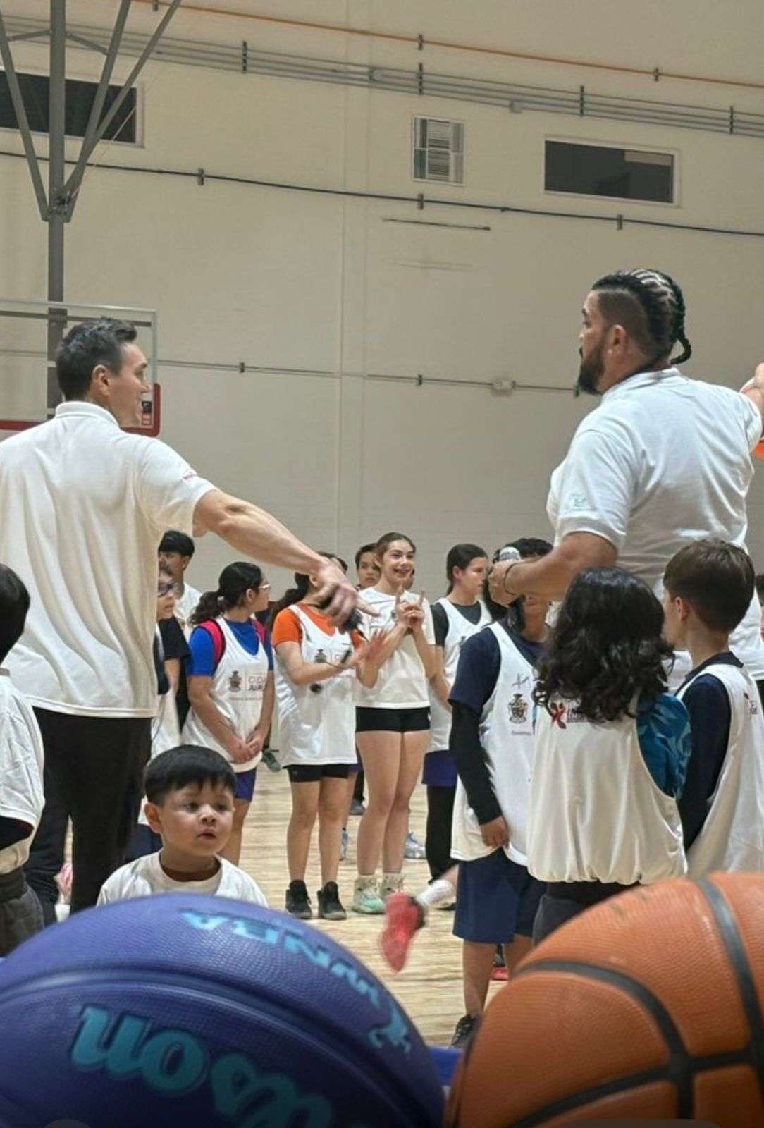 Decenas de niños y adolescentes llegaron con uniforme deportivo y tenis recién amarrados para participar en la clínica gratuita impartida por tres mexicanos que han jugado en la NBA; Eduardo Nájera, Horacio Llamas y Jorge Gutiérrez.