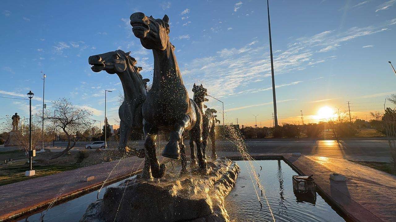 Ciudad Juárez.- Pese a las temperaturas gélidas registradas durante las primeras horas de la mañana, que alcanzaron los -5 grados centígrados, el monumento a Los Indomables mantuvo su imagen tradicional sin presentar daños ni señales de congelación, aun bajo las condiciones climáticas adversas.