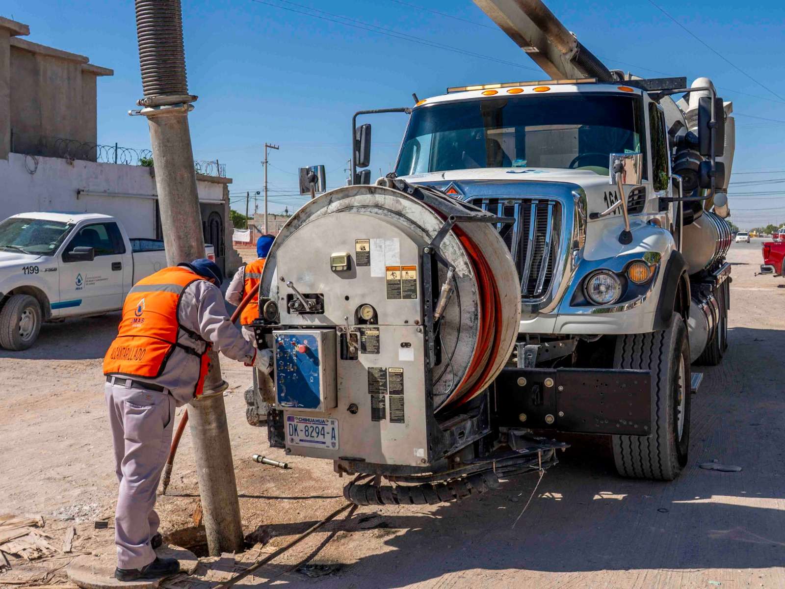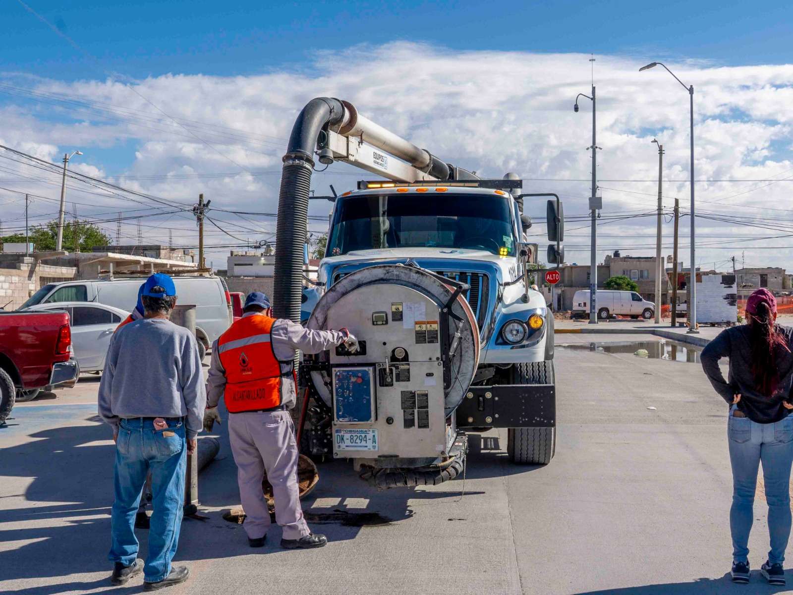 Ciudad Juárez.- Luego del recorrido realizado por personal del organismo el mes pasado, este martes realizaron trabajos de mantenimiento en la red sanitaria, abarcando diversas calles como la Ricardo Montoya, Rafael Terrazas y Salomón Acosta, entre otras, utilizando cuatro equipos especializados de inyección y succión tipo vactor, con la finalidad de prevenir los constantes brotes de aguas negras que se habían registrado en la zona.