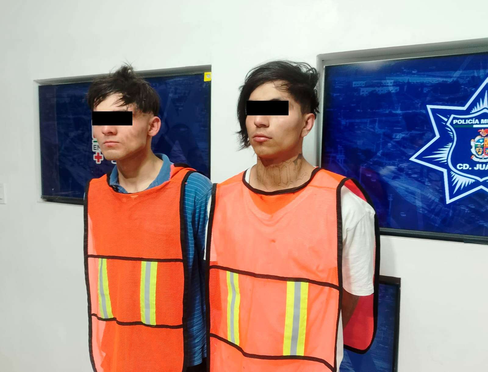 Ciudad Juárez -. Elementos de la Secretaría de Seguridad Pública Municipal arrestaron a Christian Antonio P. S. y Marvin Joel M. R., por su presunta responsabilidad en la comisión del delito de robo de vehículo con lujo de violencia.