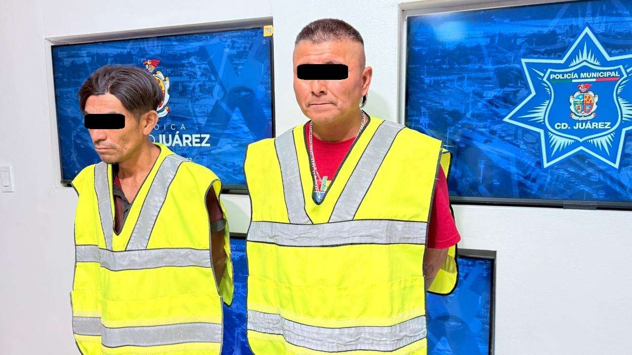 Ciudad Juárez.- Elementos de la Secretaría de Seguridad Pública Municipal, adscritos a la Estación de Policía del Distrito Poniente, realizaron el arresto de Francisco Guillermo R. H. y Leonardo Daniel G. H., por su presunta responsabilidad en la comisión de delitos contra la salud, tras el aseguramiento de una cantidad significativa de metanfetamina.