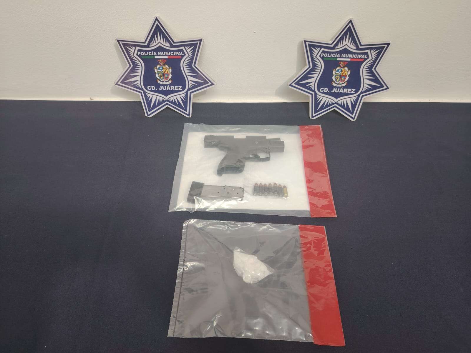 Ciudad Juárez.- Elementos de la Secretaría de Seguridad Pública Municipal arrestaron a Francisco M. T. y Alma Yazmín E. M., por su presunta responsabilidad en la comisión de delitos contra la salud y contra la ley federal de armas de fuego y explosivos.