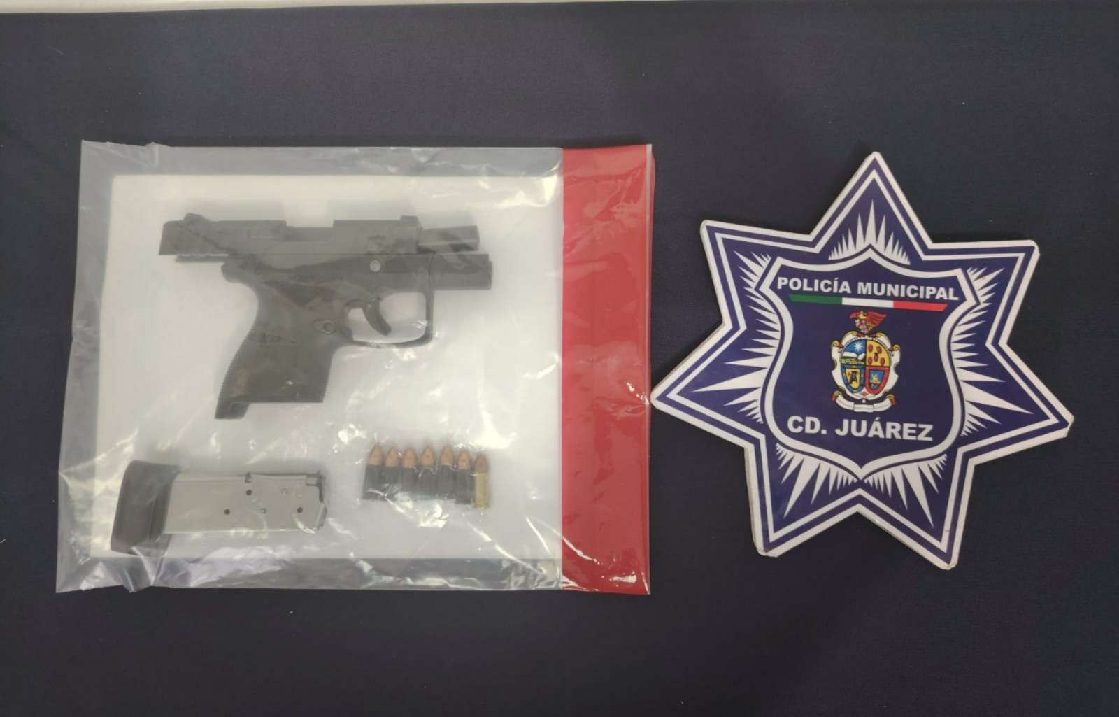 Razón por la cual los oficiales los abordaron por protocolos de seguridad, en donde al someterlos a una inspección preventiva, les fue localizada en el interior del automóvil un arma de fuego calibre 9 milímetros con un cargador abastecido con siete cartuchos útiles, además de un envoltorio con cristal con un peso de 17.7 gramos.