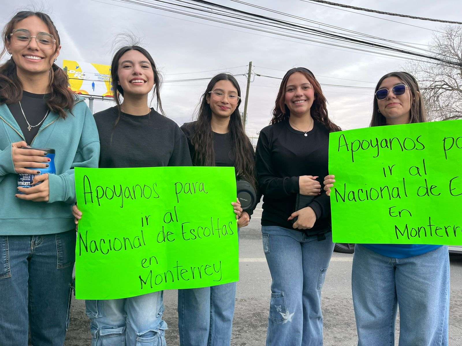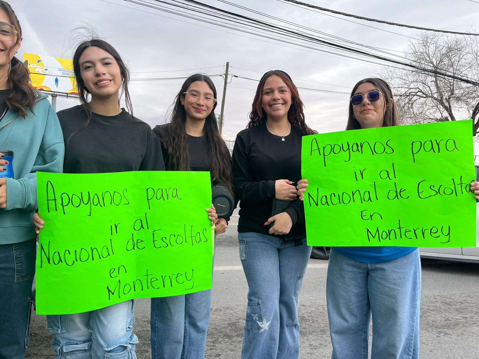 Ciudad Juárez.- En el crucero de la avenida Tecnológico y el bulevar Manuel Gómez Morín, justo donde el tráfico se detiene unos segundos y la ciudad respira entre claxonazos, un grupo de jovencitas levanta cartulinas verde fosforescente con un mismo mensaje: “Apóyanos para ir al Nacional de Escoltas en Monterrey”.