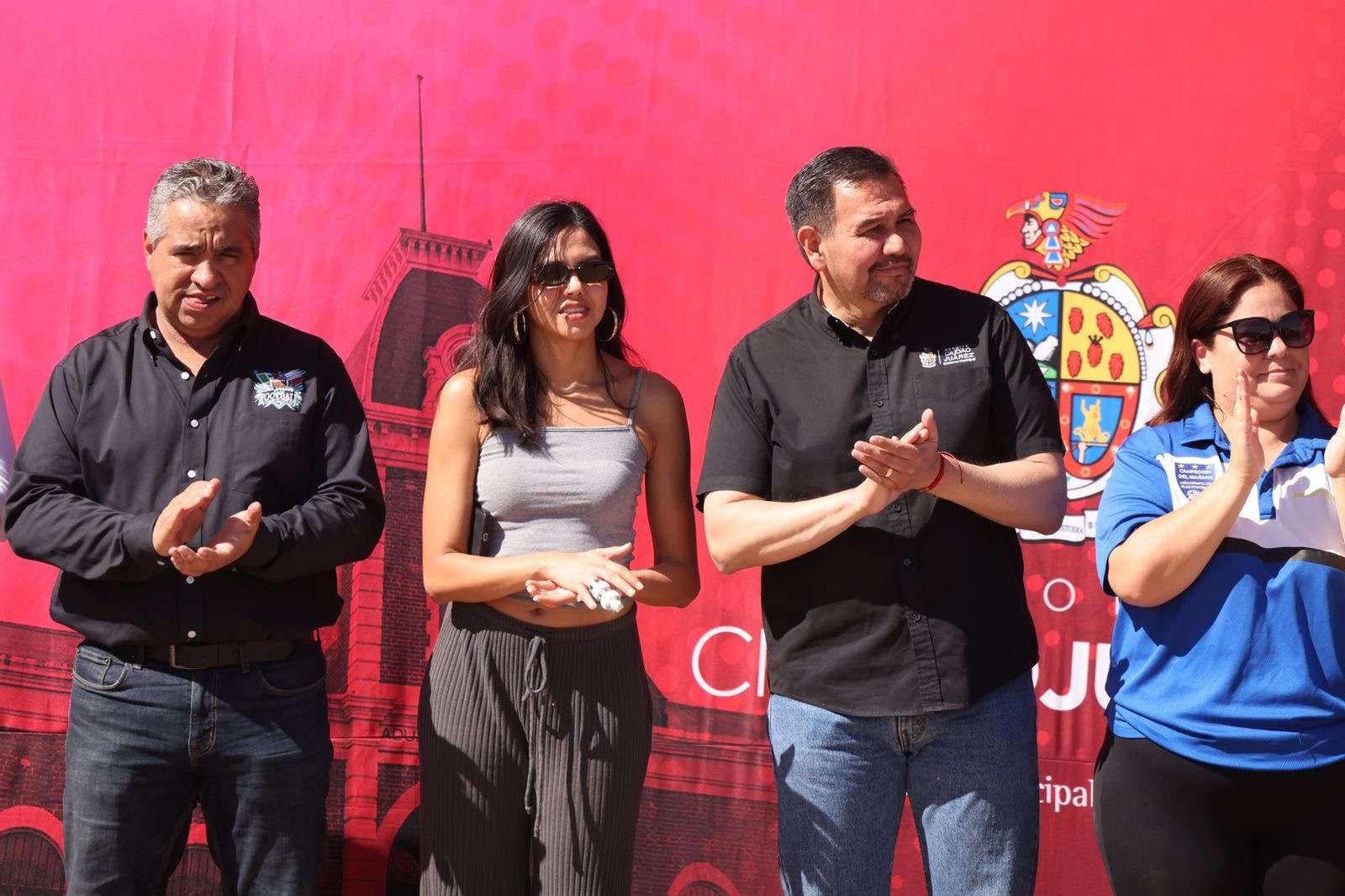 Al final del acto protocolario, el edil juarenses llevó a cabo el lanzamiento simbólico del balón, el cual, niñas y niños no dudaron en querer acapararlo para disfrutar de la magia del juego.