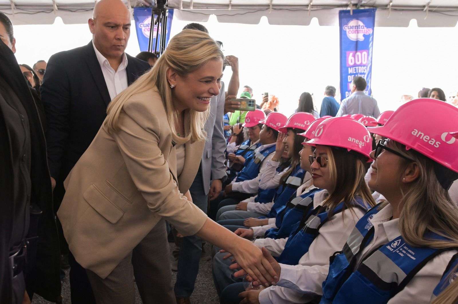 Como parte del evento, 50 colaboradoras de la Junta Municipal de Agua y Saneamiento (JMAS) rindieron protesta como nuevas integrantes del programa “Cascos Rosas”, iniciativa que impulsa la participación, capacitación y liderazgo de las mujeres en el sector hídrico.