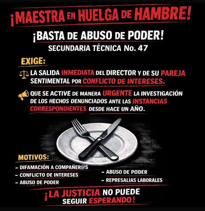 Ante la falta de atención por parte de las autoridades educativas y sindicales, decidió recurrir a una manifestación pacífica como último recurso para visibilizar su caso.