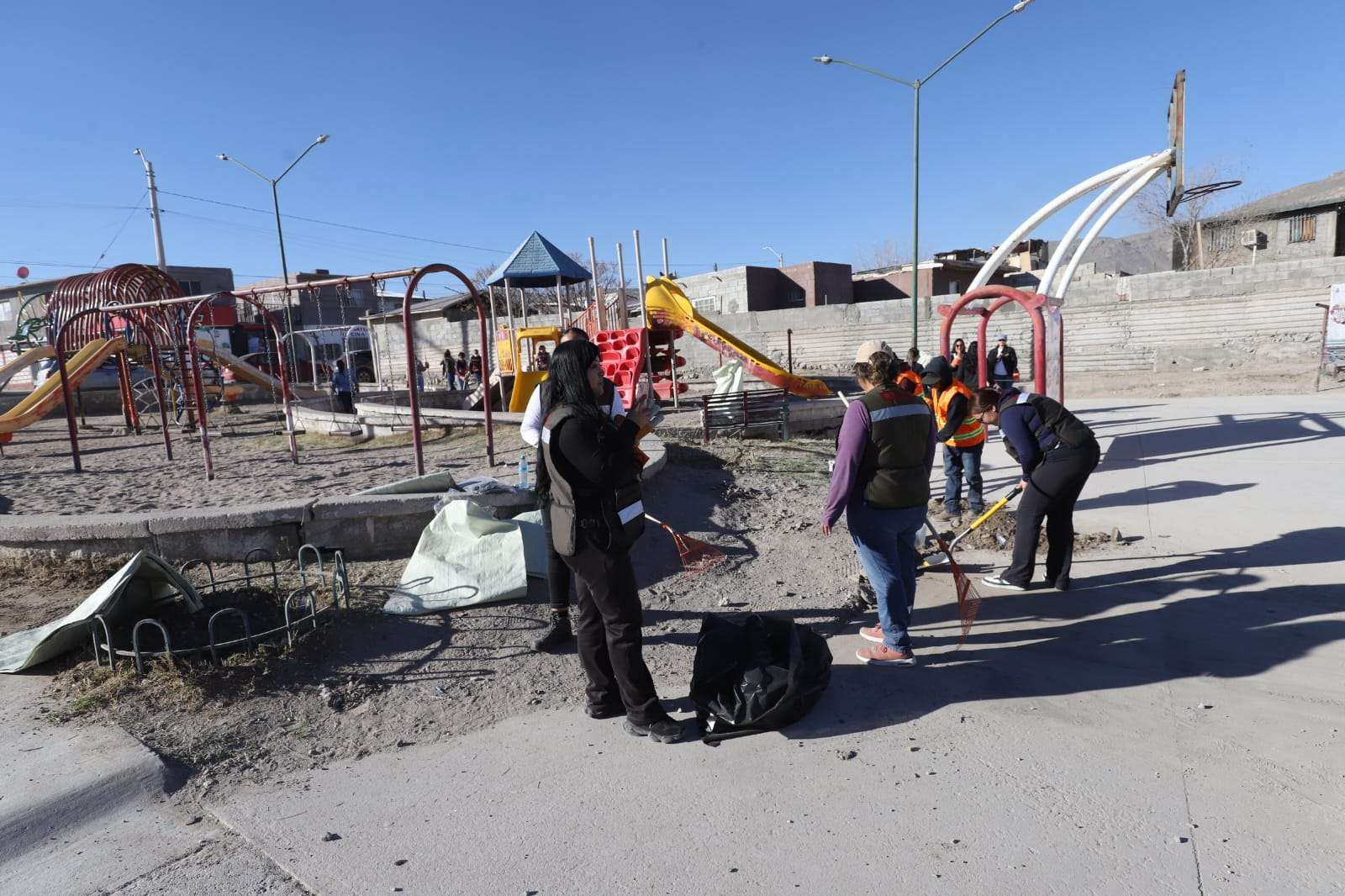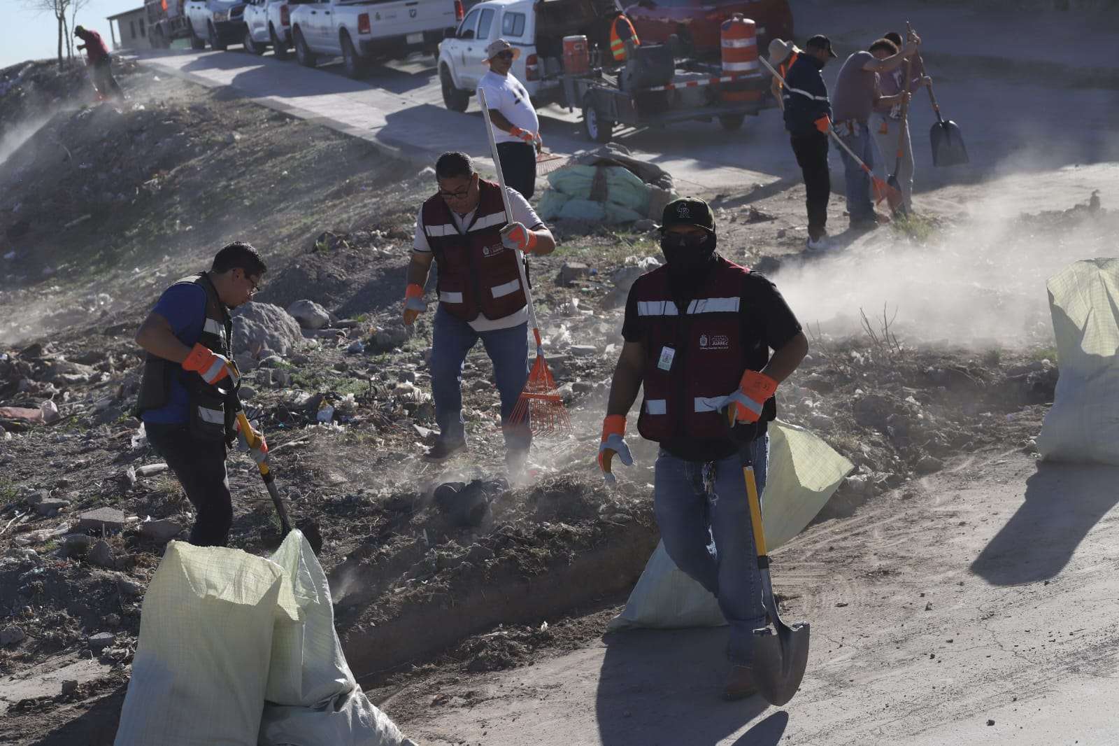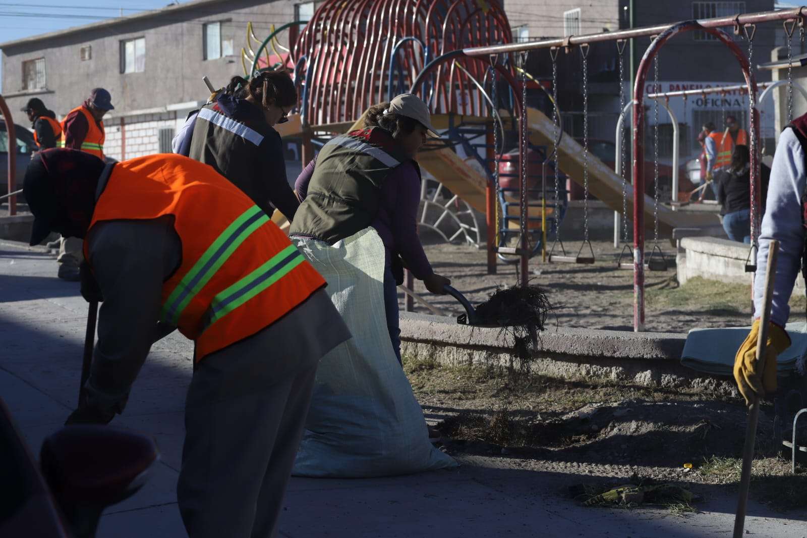 Ciudad Juárez.- Como parte de las acciones del programa “Juárez Amanece Limpio”, los empleados de la Dirección General de Servicios Públicos Municipales, realizaron trabajos intensivos de limpieza y rehabilitación en la colonia Lomas de Morelos.