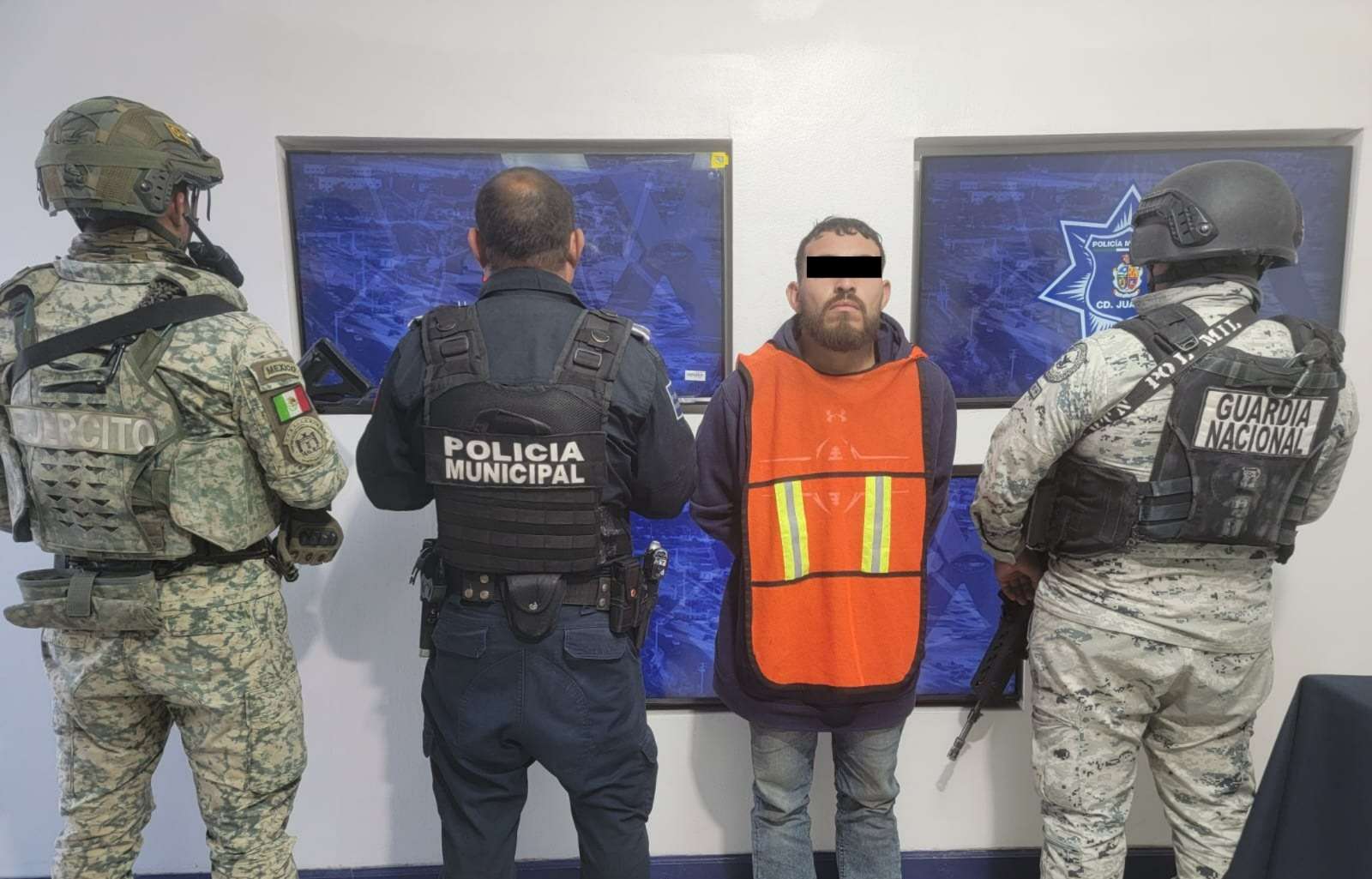 Ciudad Juárez.- Agentes Municipales que participan en operativo conjunto con elementos de la Guardia Nacional y Ejército Mexicano, capturaron a Saúl Lorenzo S. S., por su presunta responsabilidad en la comisión de delitos contra la salud, mismo que será investigado por su presunta participación en un homicidio ocurrido en esta ciudad.