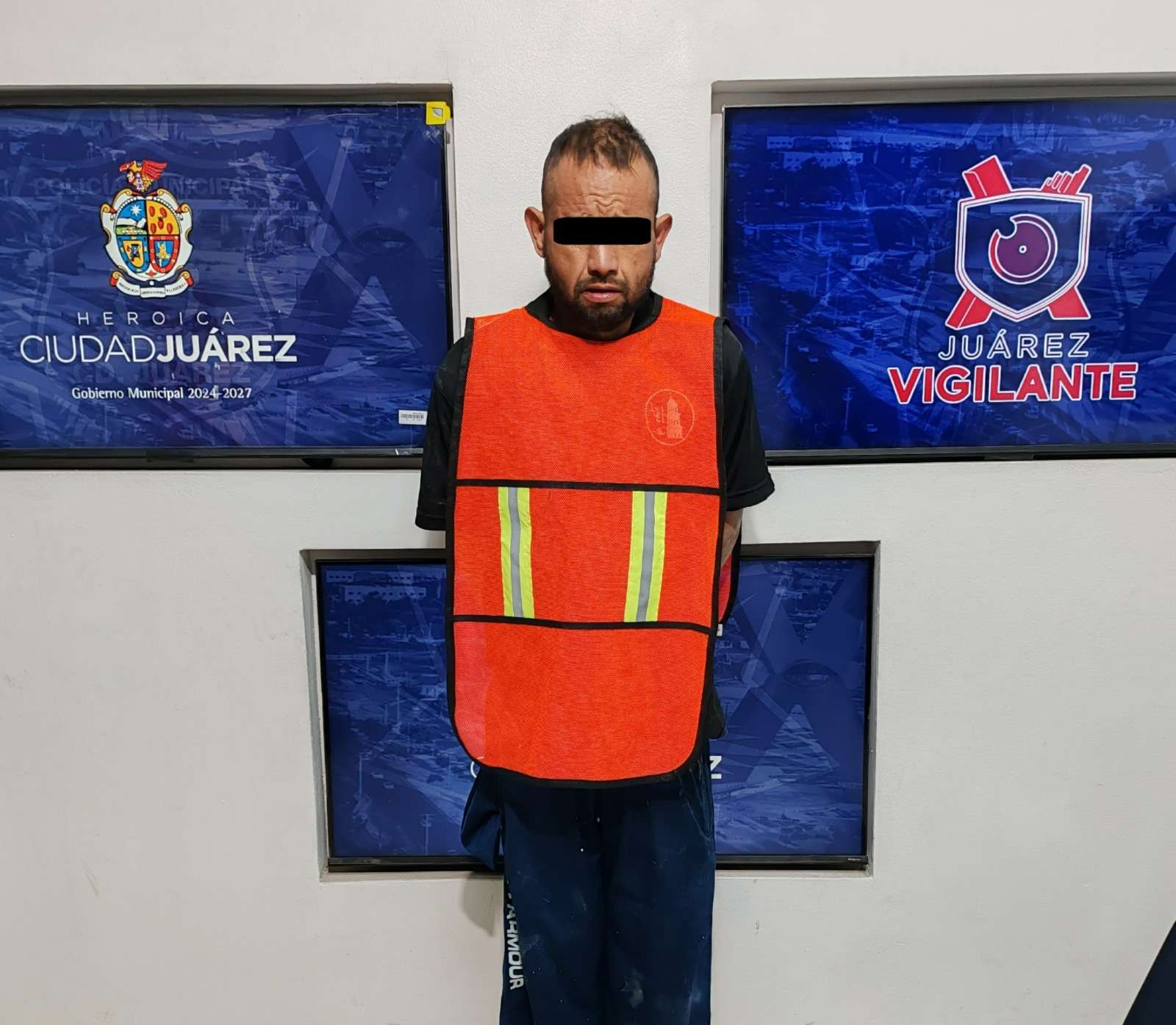 Ciudad Juárez.- Elementos de la Secretaría de Seguridad Pública Municipal, detuvieron a un hombre identificado como Edgar Eduardo P. R., por su presunta responsabilidad en la comisión del delito de daños.