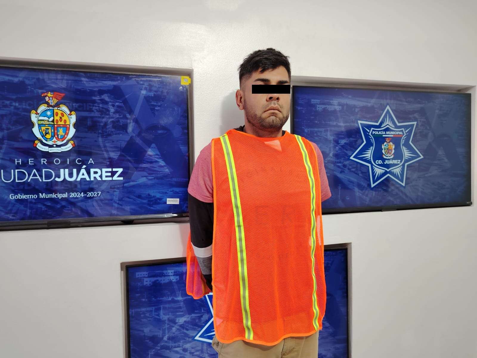Ciudad Juárez .- Agentes de la Secretaría de Seguridad Pública Municipal arrestaron a Luis Ángel S. B., por su presunta responsabilidad en la comisión del delito de desobediencia y resistencia de particulares, mismo que será investigado por su posible participación en robos con violencia a establecimientos comerciales.