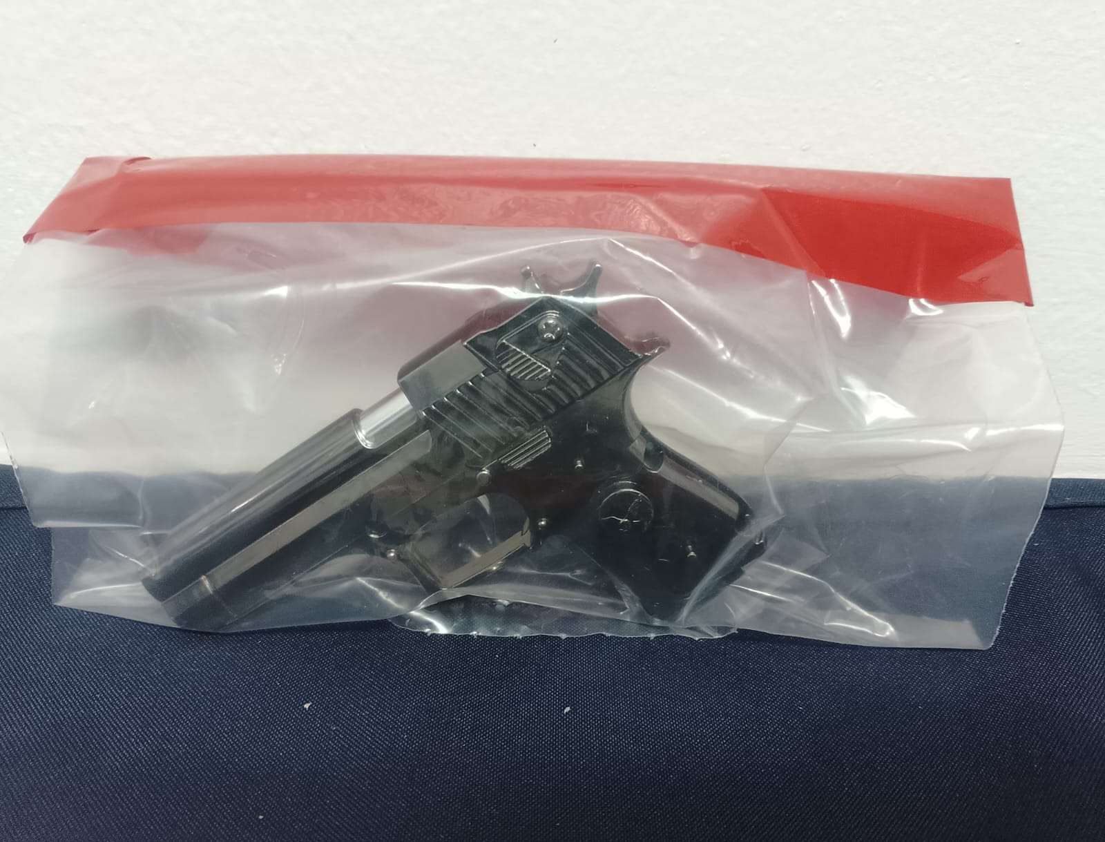 Siendo en ese momento que el sujeto sacó un arma de fuego, con el cual apuntó a los agentes, por lo que uno de ellos le ordenó que se entregará y arrojará la pistola, haciendo caso omiso, por lo que el policía accionó su arma de cargo, lesionándolo en la pantorrilla izquierda, para luego proceder a su detención, así como al aseguramiento del arma que resultó ser de postas.