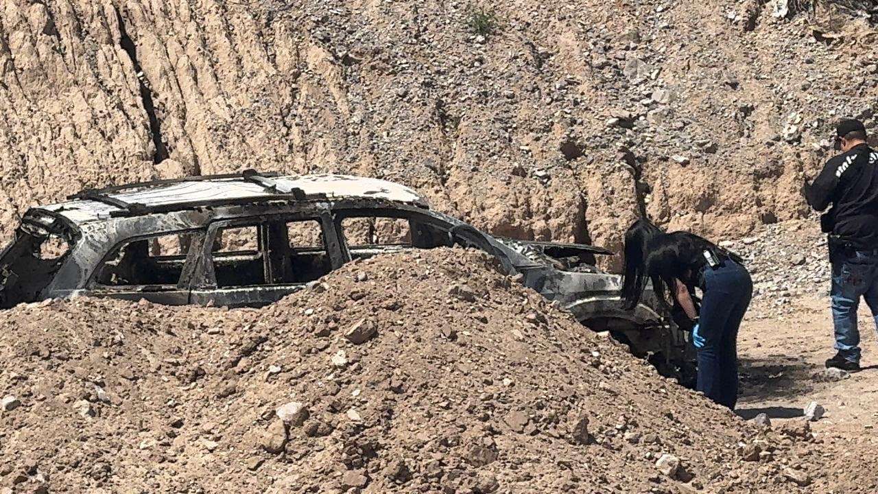 Ciudad Juárez.- Un vehículo completamente calcinado con el cuerpo de un hombre en su interior fue localizado la mañana de este domingo en la colonia Renovación 92, al poniente de la ciudad, lo que generó la movilización de corporaciones de seguridad y personal de la Fiscalía General del Estado.