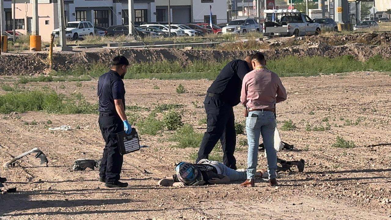 El cuerpo del motociclista quedó en un lote baldío de la calle Camino Viejo a San José y Villarreal Torres.