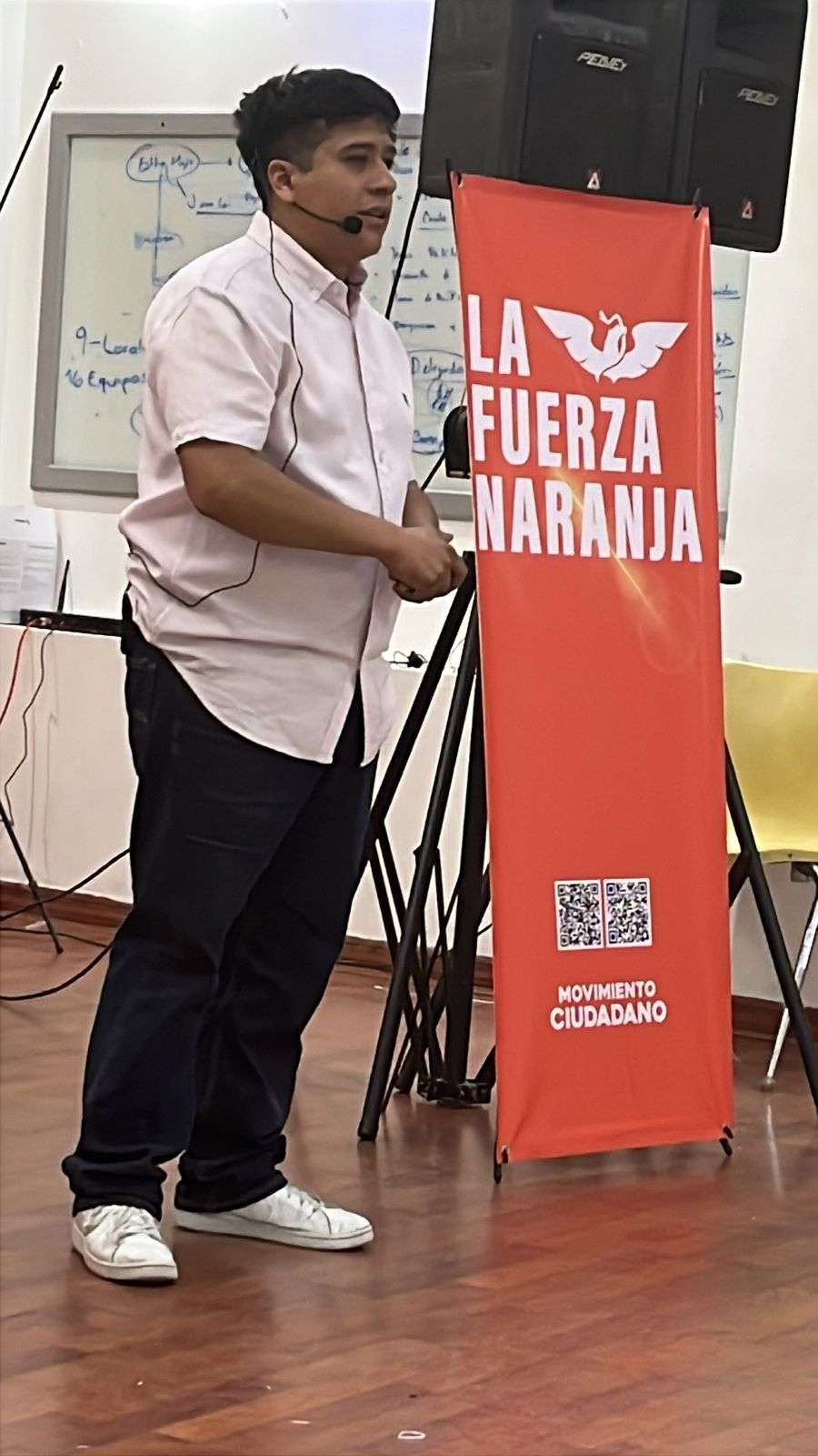 Como parte de estas acciones, Josué Escobar, líder de Jóvenes en Movimiento, participa junto a otros miembros del colectivo en las visitas a las preparatorias y colonias, donde ofrecen las conferencias.