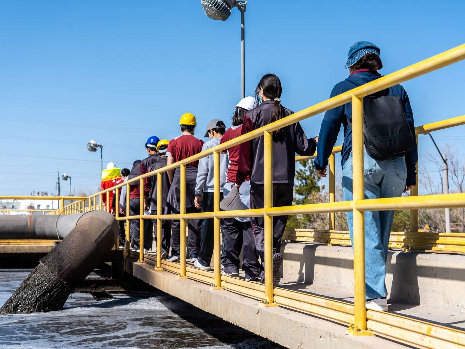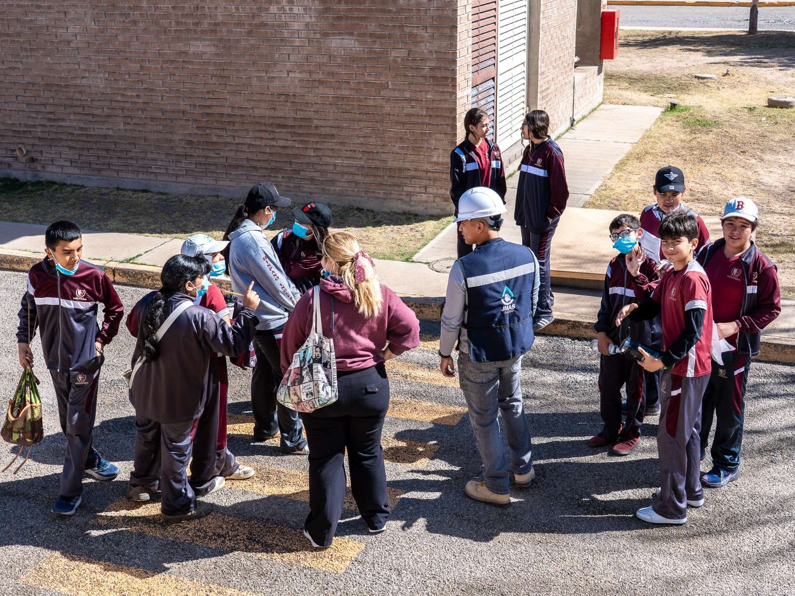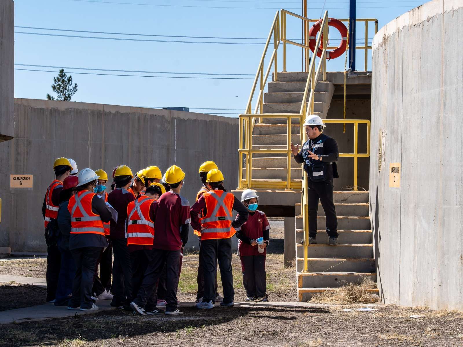 Ciudad Juárez.- La Junta de Agua y Saneamiento de Juárez recibió este lunes a los alumnos de secundaria del Colegio Hispano Inglés para realizar un recorrido por la Planta Tratadora de Aguas Residuales Norte y enseñar el proceso del agua tratada.