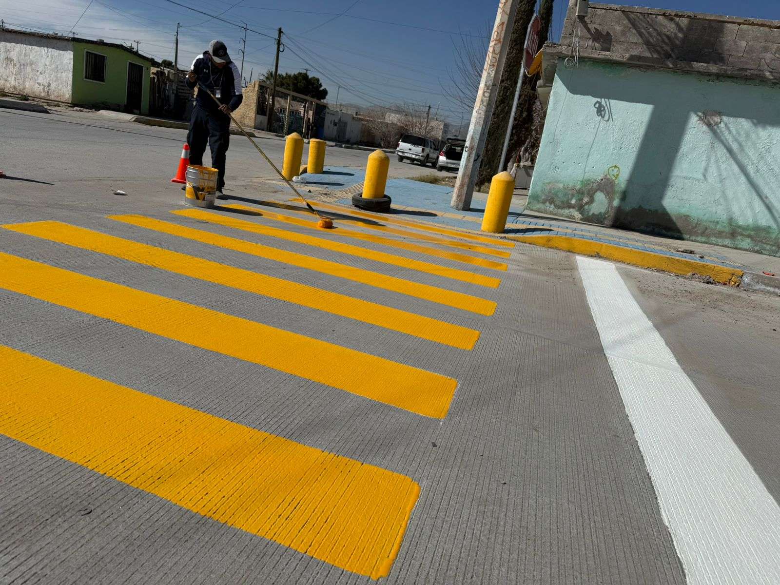 Ciudad Juárrz.- La Coordinación General de Seguridad Vial, a través del área de Control de Tráfico, continúa con las acciones para mejorar la movilidad y proteger a peatones y conductores mediante trabajos de señalización y pintura vial en distintos puntos de la ciudad.