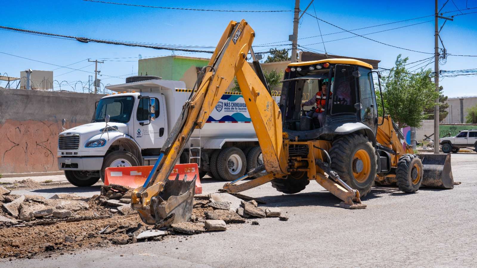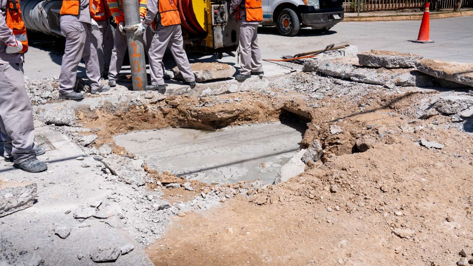 Para agilizar los trabajos, las cuadrillas operan maquinaria como retroexcavadora, equipo de inyección y succión, así como camiones de volteo, con la finalidad de atender de manera eficiente y segura la zona afectada, se contempla concluir las labores este miércoles por la tarde.