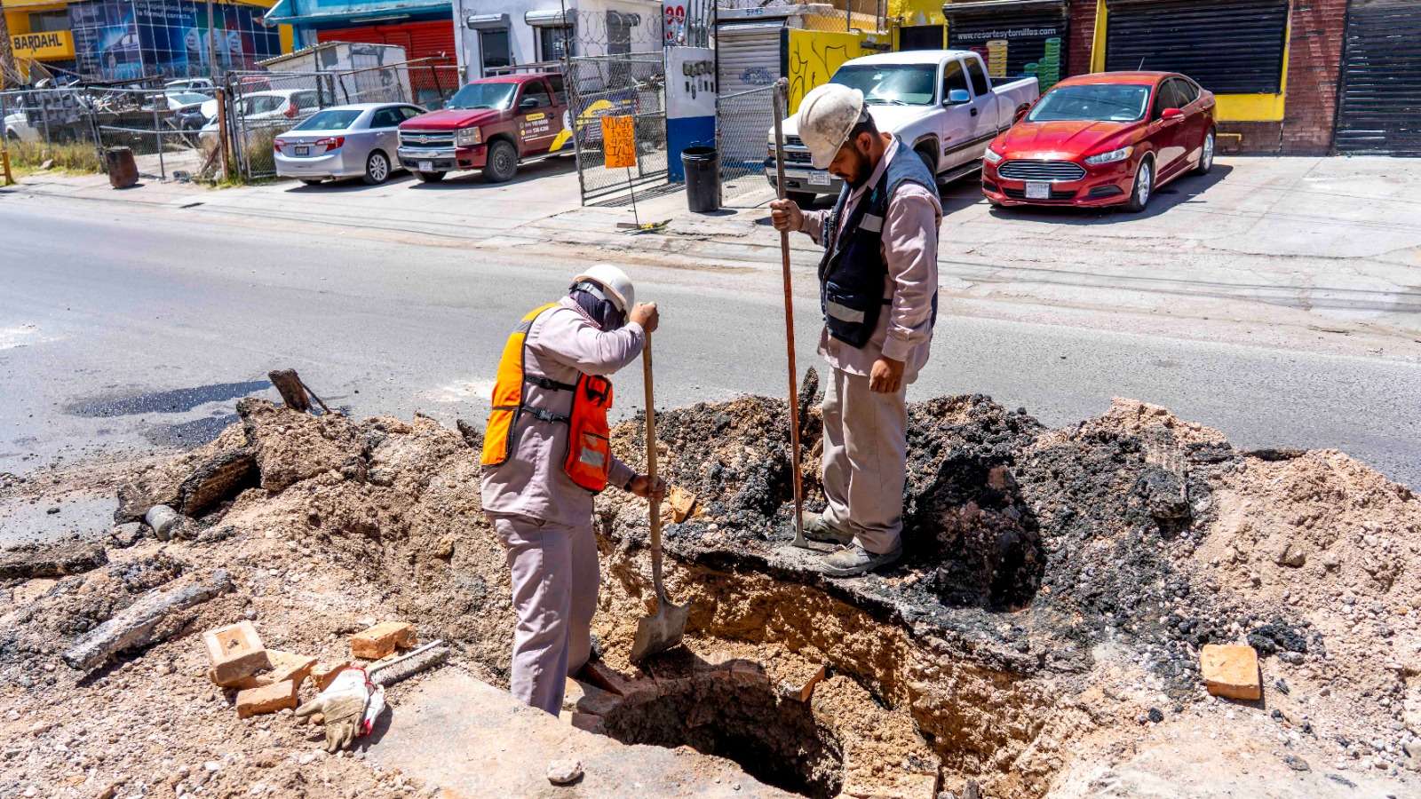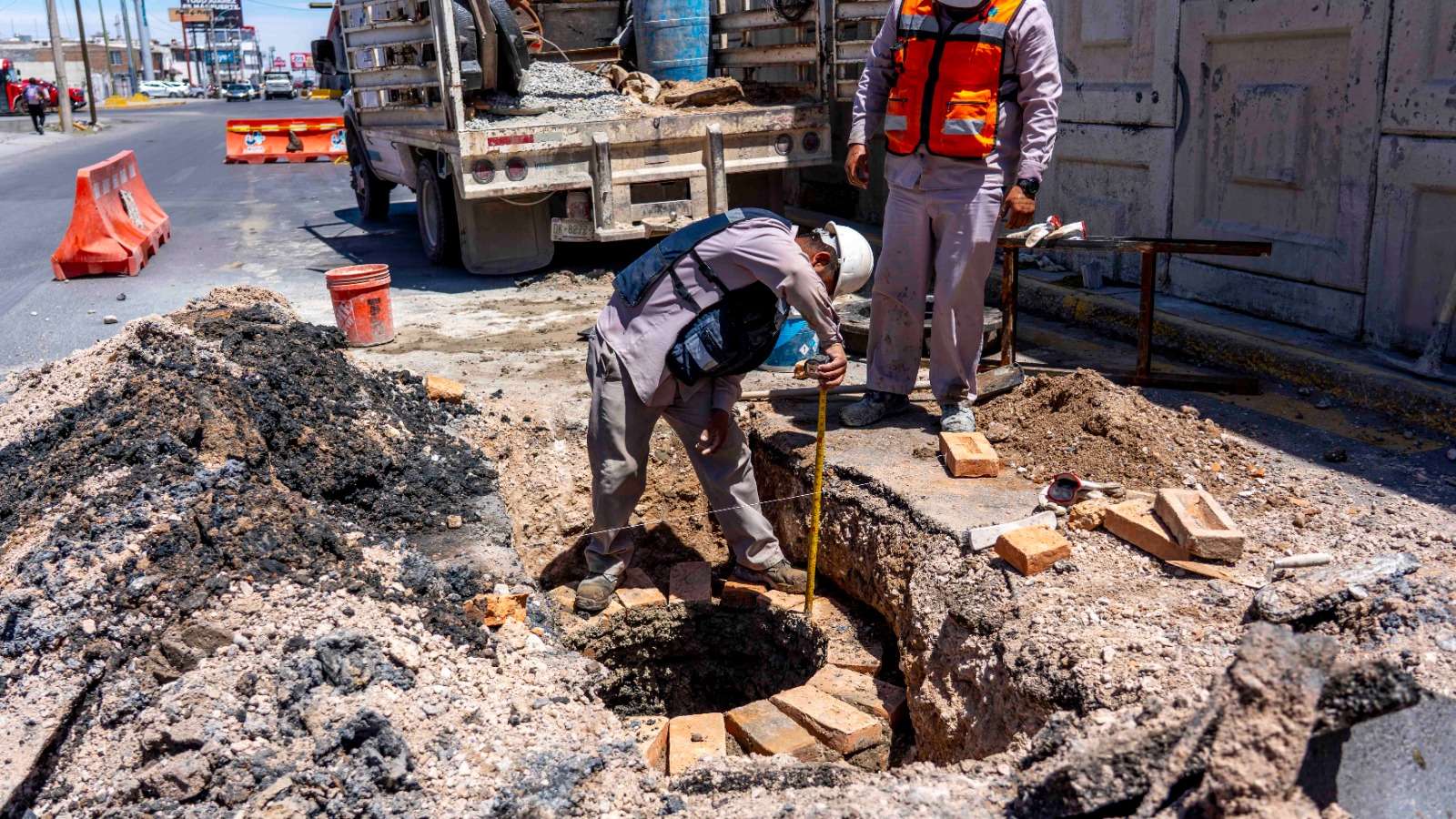 Ciudad Juárez.- La Junta de Agua y Saneamiento de Juárez trabaja en la reparación de un hundimiento presentado sobre la avenida Tecnológico casi cruce con avenida Manuel J. Clouthier debido un pozo caído que fue tapado por el exceso de recarpeteo en la zona.