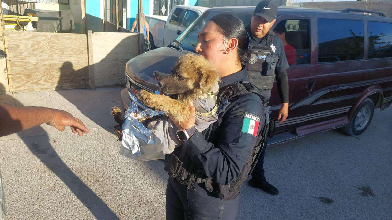 Ciudad Juárez .- Elementos de la Secretaría de Seguridad Pública Municipal, adscritos al Distrito Sur, participaron en el rescate de dos perros que se encontraban atrapados en el interior de una vivienda en llamas, en hechos registrados en la colonia Villas del Sur.