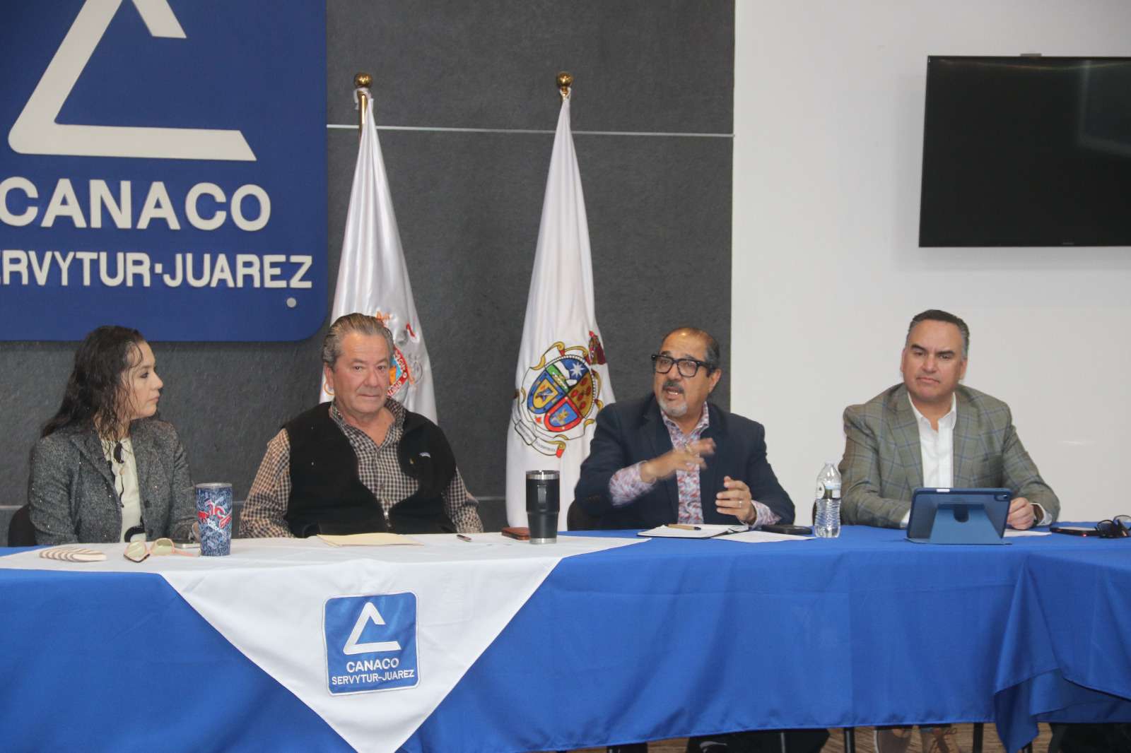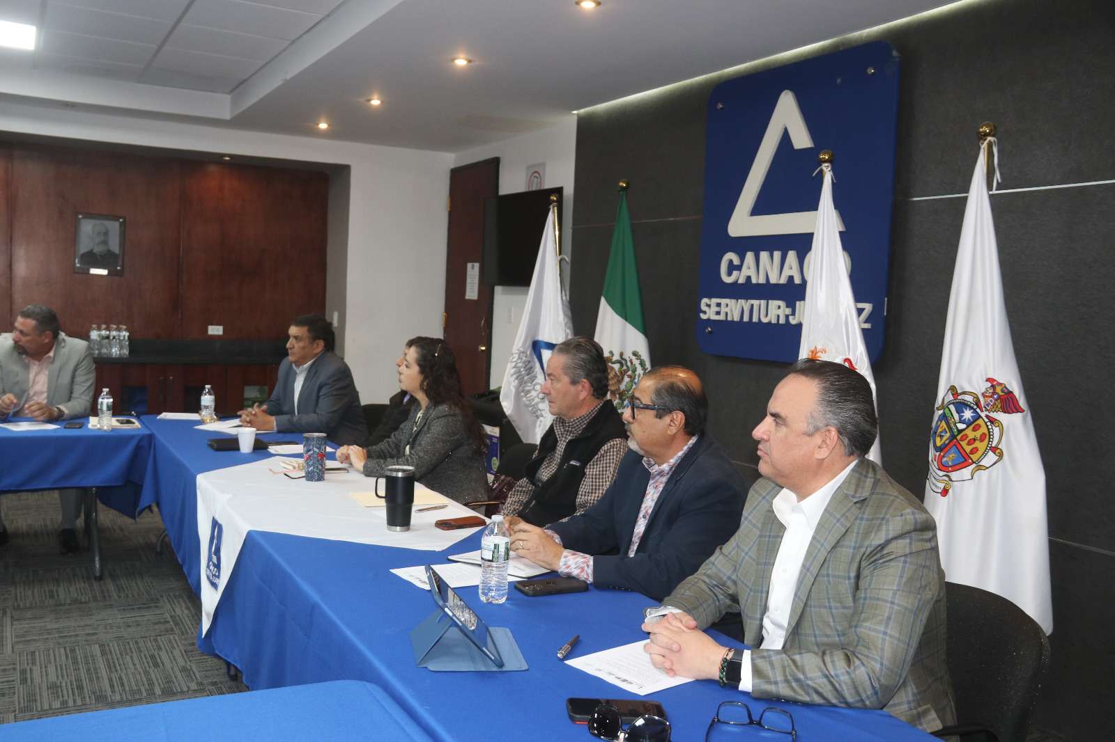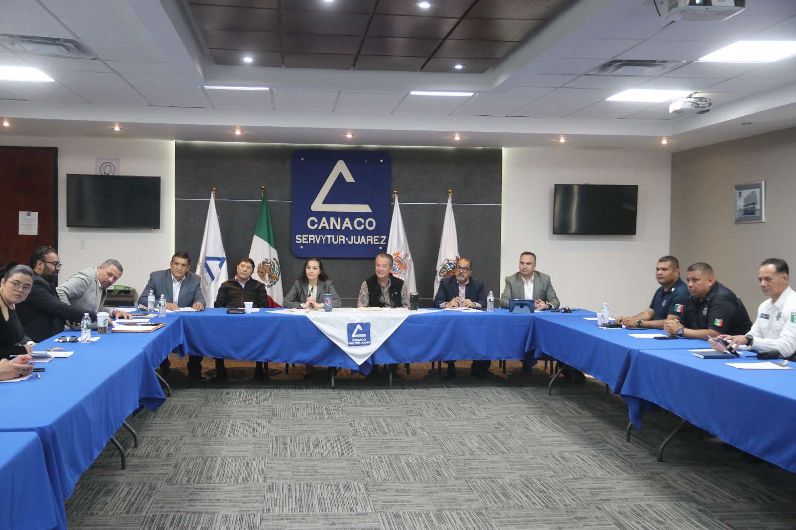 Ciudad Juárez .- La Secretaría de Seguridad Pública Municipal formó parte de la sesión ordinaria y mesa de coordinación con representantes del sector empresarial, llevada a cabo en las instalaciones de la Cámara Nacional de Comercio, con el propósito de revisar y evaluar las condiciones de seguridad en las áreas comerciales de la ciudad.