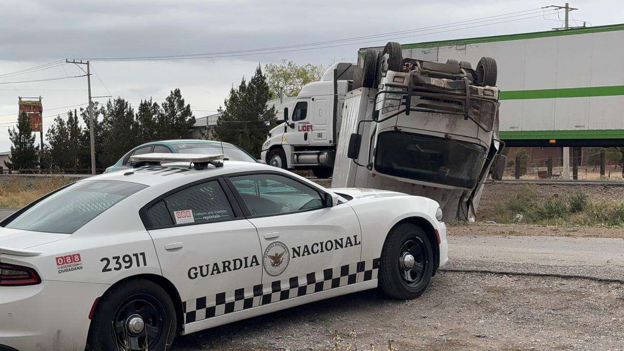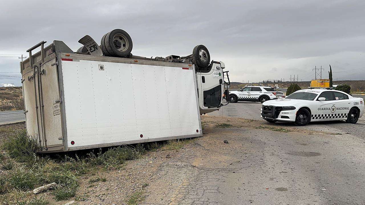 Ciudad Juárez.- Un camión de carga que venía de Chihuahua a Juárez se volcó a la altura de la garita del Kilómetro 30 de la carretera Panamericana.