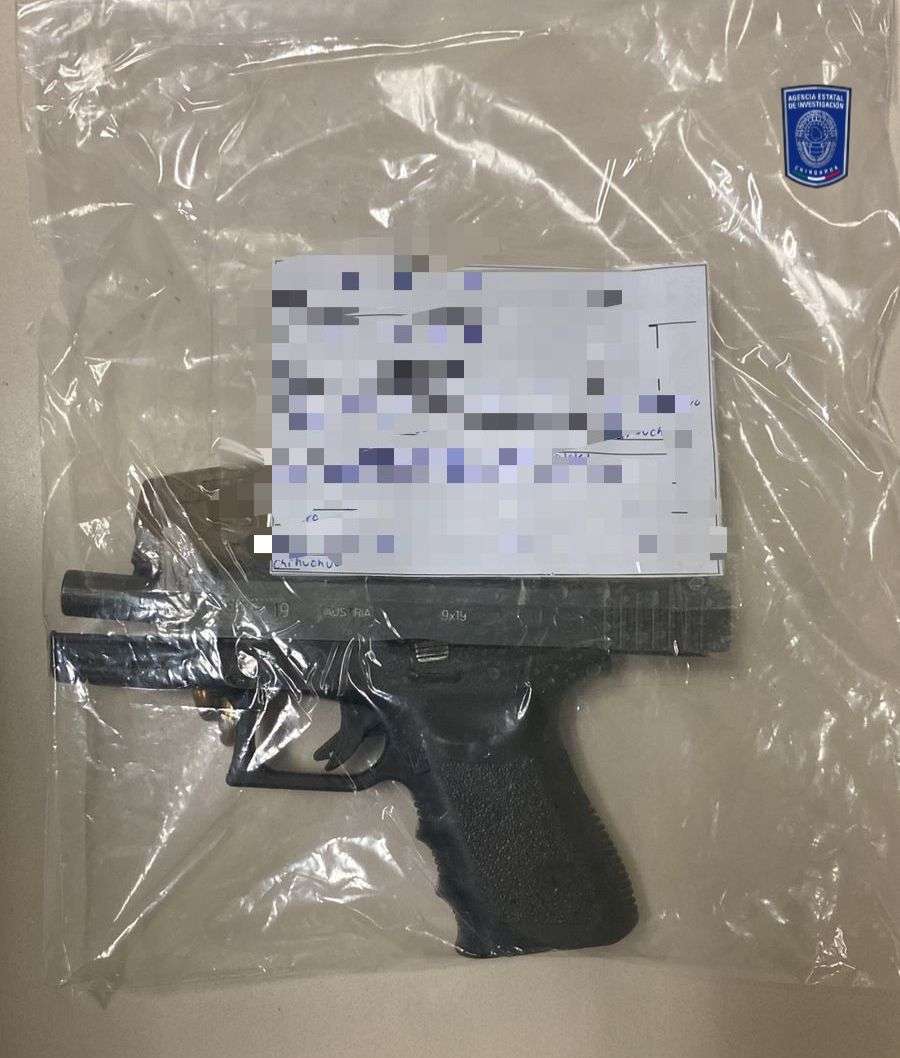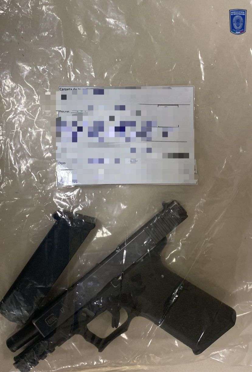 • Arma de fuego, tipo pistola, color negro, con la leyenda Glock 9 Austria 9 x19, abastecida con siete cartuchos útiles.