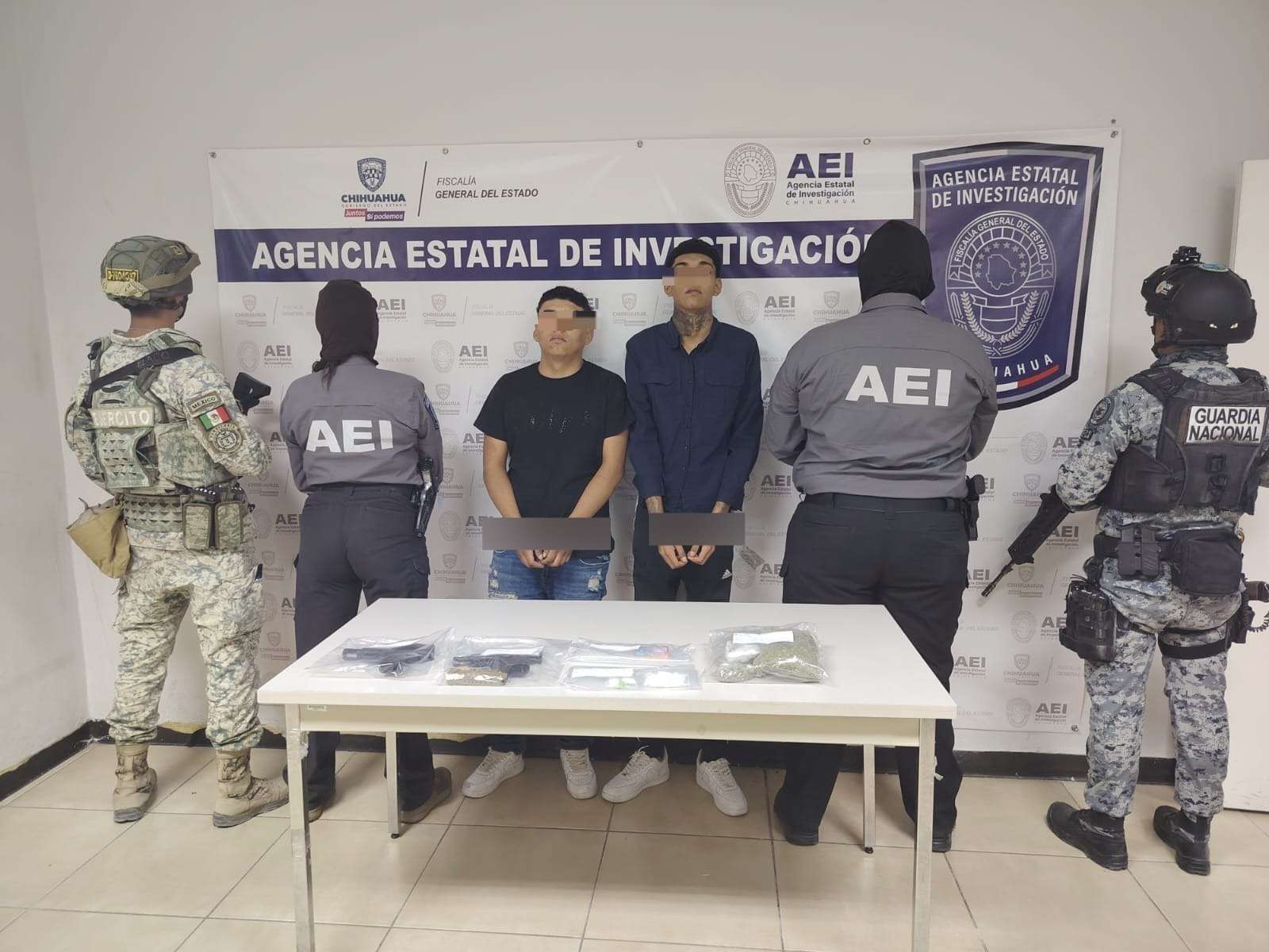 Ciudad Juárez.- Derivado del seguimiento a una carpeta de investigación por el delito de robo, elementos de la Agencia Estatal de Investigación (AEI), de la Fiscalía de Distrito Zona Norte, cumplimentaron una orden de cateo en una vivienda de la colonia Anexas de Ciudad Juárez, resultando tres personas detenidas y el aseguramiento de armas de fuego y drogas.