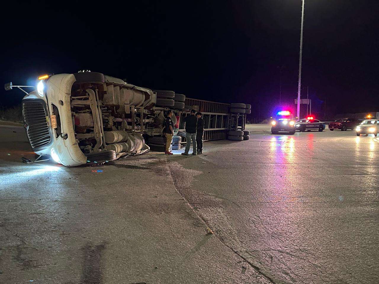 De acuerdo con los primeros reportes, el tractocamión circulaba procedente del área de Santa Teresa sobre la avenida Rancho Anapra y, al tomar la curva de la glorieta, el peso de la carga le ganó al conductor, lo que ocasionó que la unidad se volcara sobre su costado derecho.