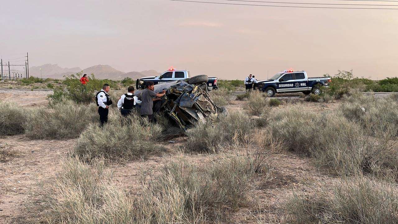 Ciudad Juárez.– Una volcadura registrada sobre la carretera Jerónimo-Santa Teresa, en dirección a Rancho Anapra, dejó a una mujer en estado grave y a un hombre lesionado, luego de un choque entre dos vehículos.