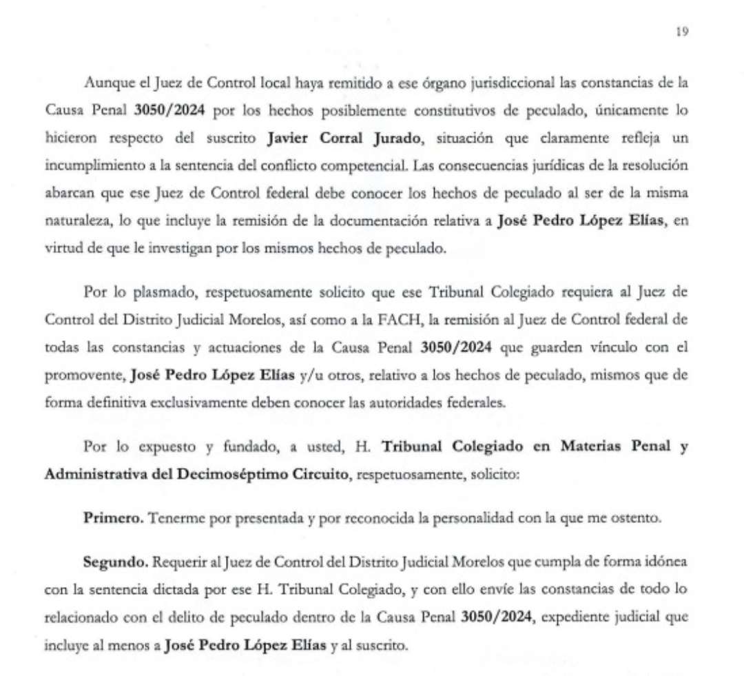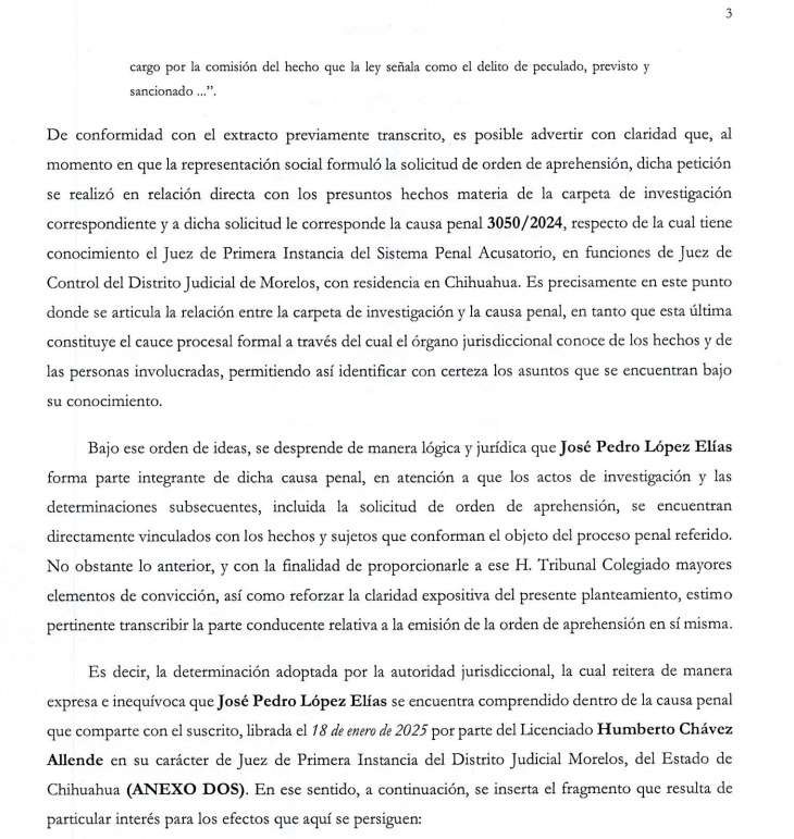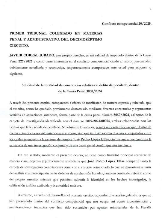 Chihuahua.- El exgobernador de Chihuahua, Javier Corral Jurado, se pronunció a favor de López Elías y solicitó una revisión puntual del caso relacionado con un presunto desvío de 98 millones de pesos.