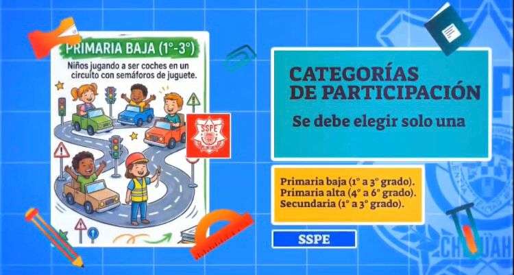 La convocatoria está dirigida a estudiantes de primaria y secundaria, quienes podrán participar en equipos de dos o tres integrantes. Cada grupo deberá diseñar la planeación y el material didáctico de una sesión educativa enfocada en la seguridad vial, con la particularidad de que el material sea capaz de ser ejecutado por un tercero.