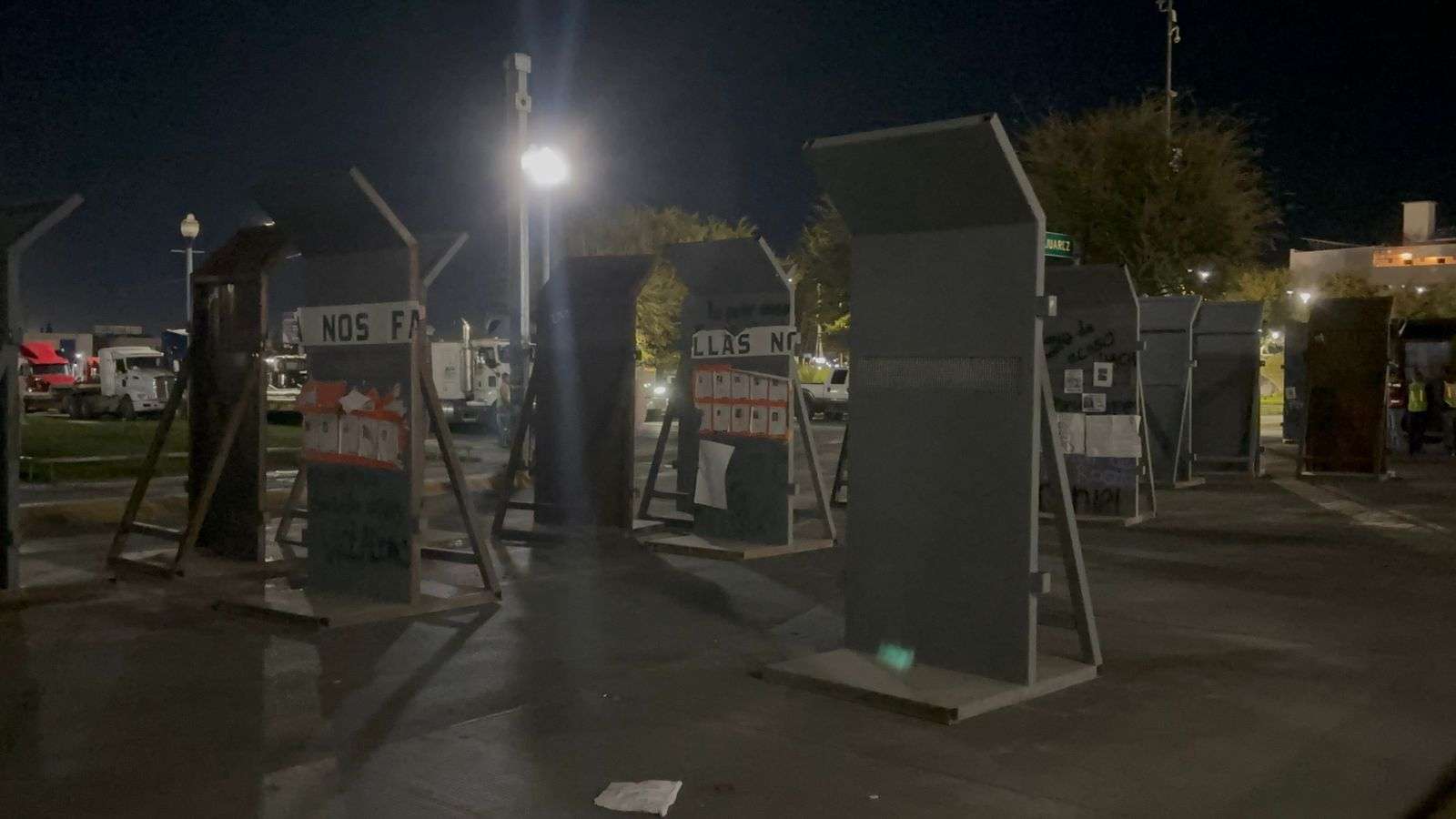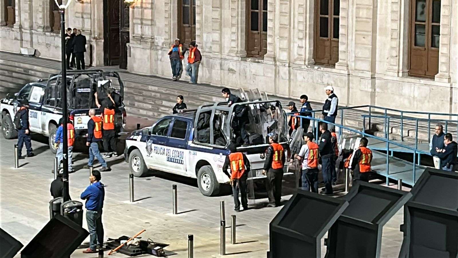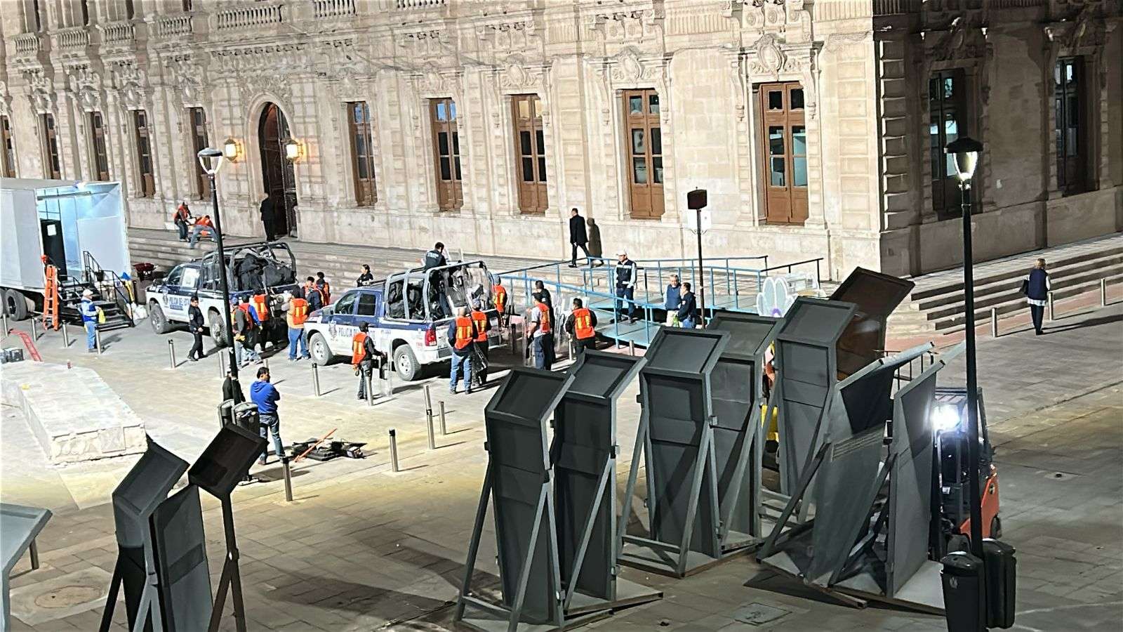 Desde las 19:00 horas, cuadrillas de trabajadores apoyadas por montacargas aceleraron el ritmo de desmontaje en las inmediaciones de la Presidencia Municipal y el Palacio de Gobierno. La meta es que, antes del inicio de la jornada laboral y escolar de mañana, el sector luzca libre de los obstáculos instalados desde la semana pasada.
