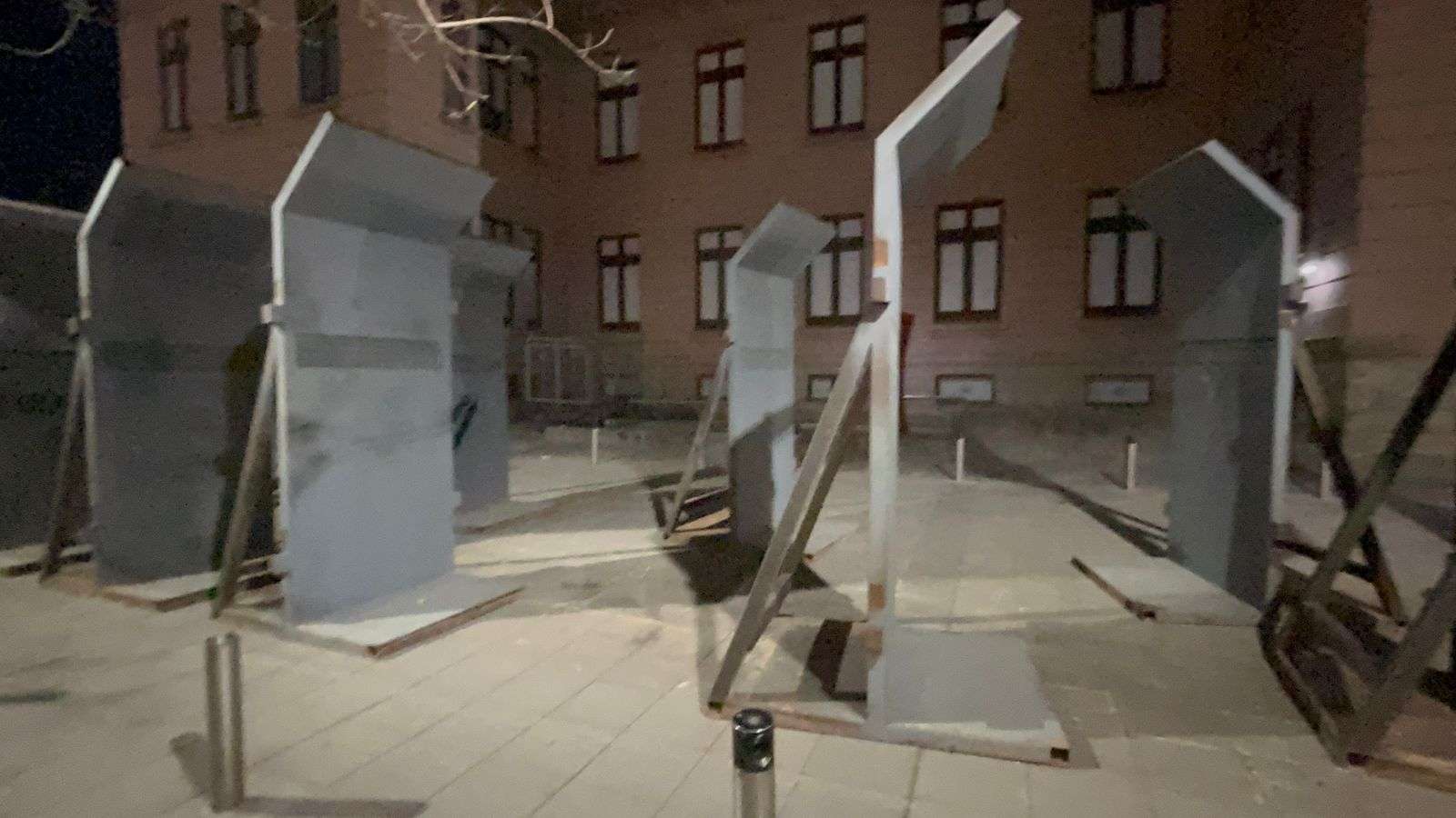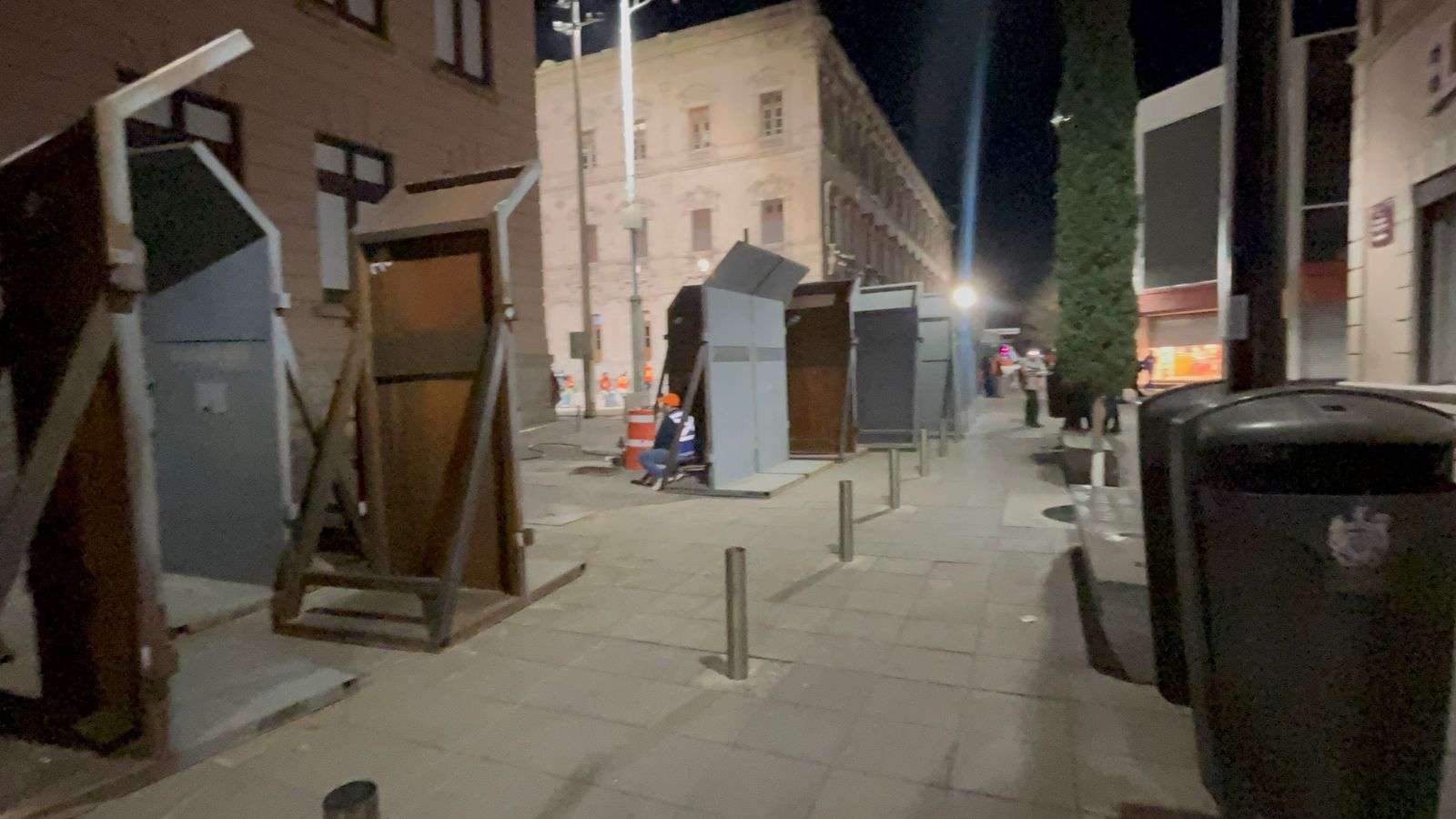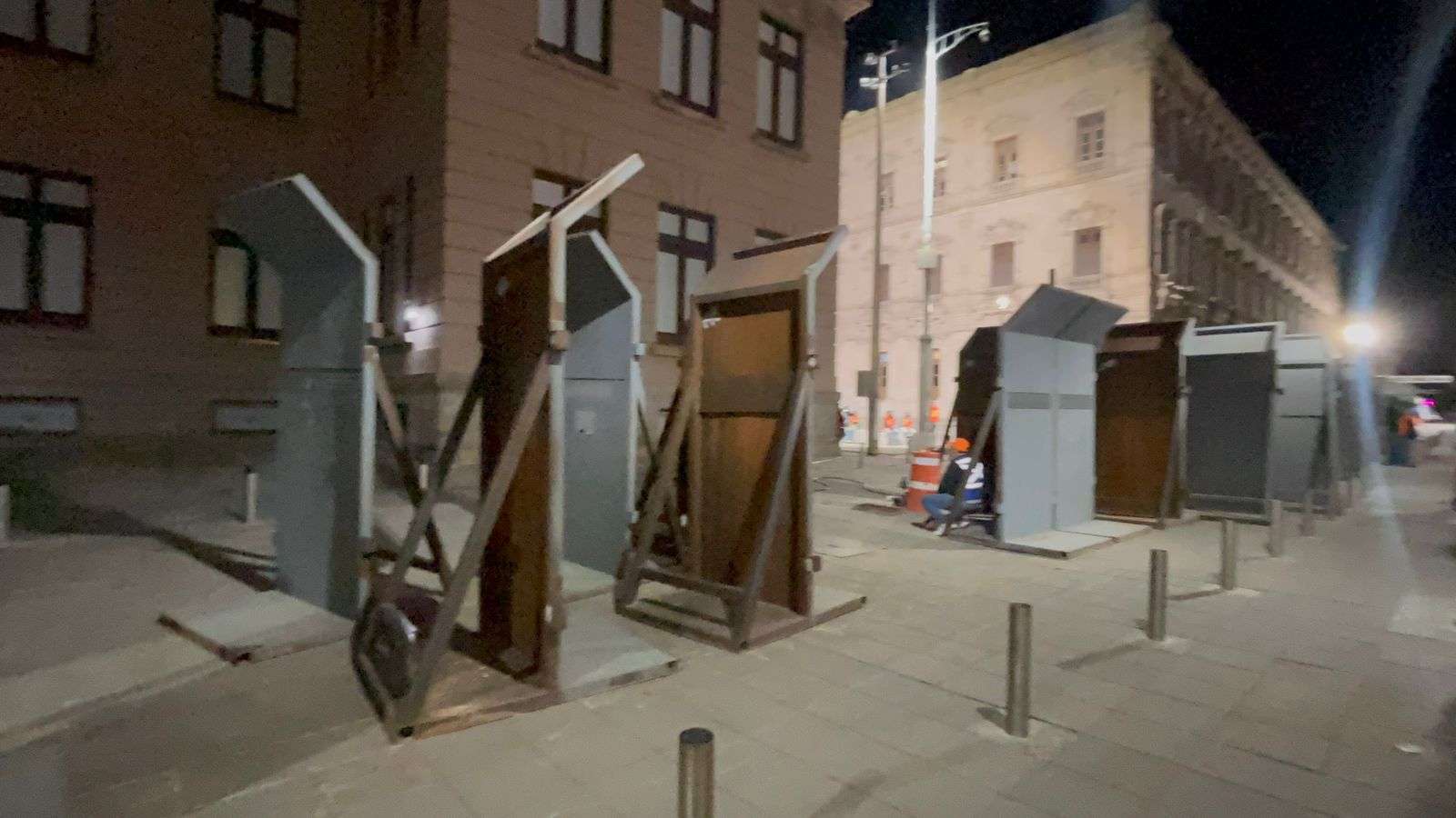 Desde las 19:00 horas, cuadrillas de trabajadores apoyadas por montacargas aceleraron el ritmo de desmontaje en las inmediaciones de la Presidencia Municipal y el Palacio de Gobierno. La meta es que, antes del inicio de la jornada laboral y escolar de mañana, el sector luzca libre de los obstáculos instalados desde la semana pasada.