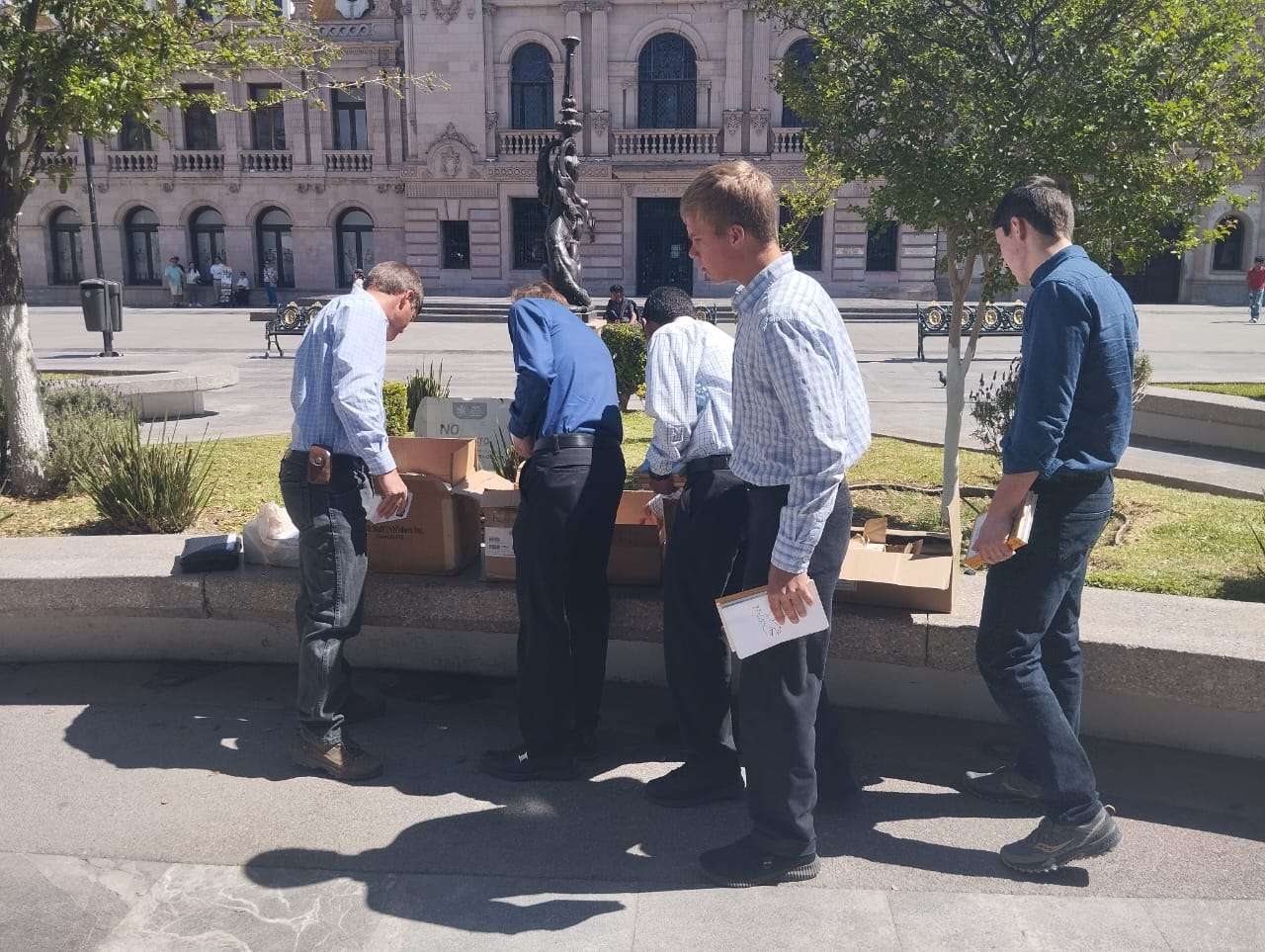 Uno de los representantes, Gregorio Myers, mencionó que tres iglesias menonitas se organizaron para acudir a este punto de la ciudad con el objetivo de compartir su religión a través de himnos y la entrega de pequeños libros (plaquettes), principalmente dirigidos a las infancias.