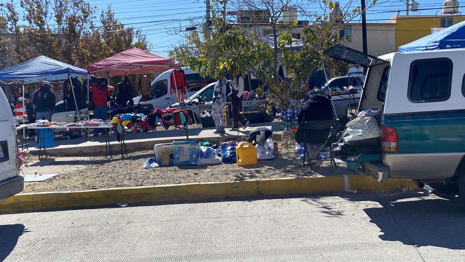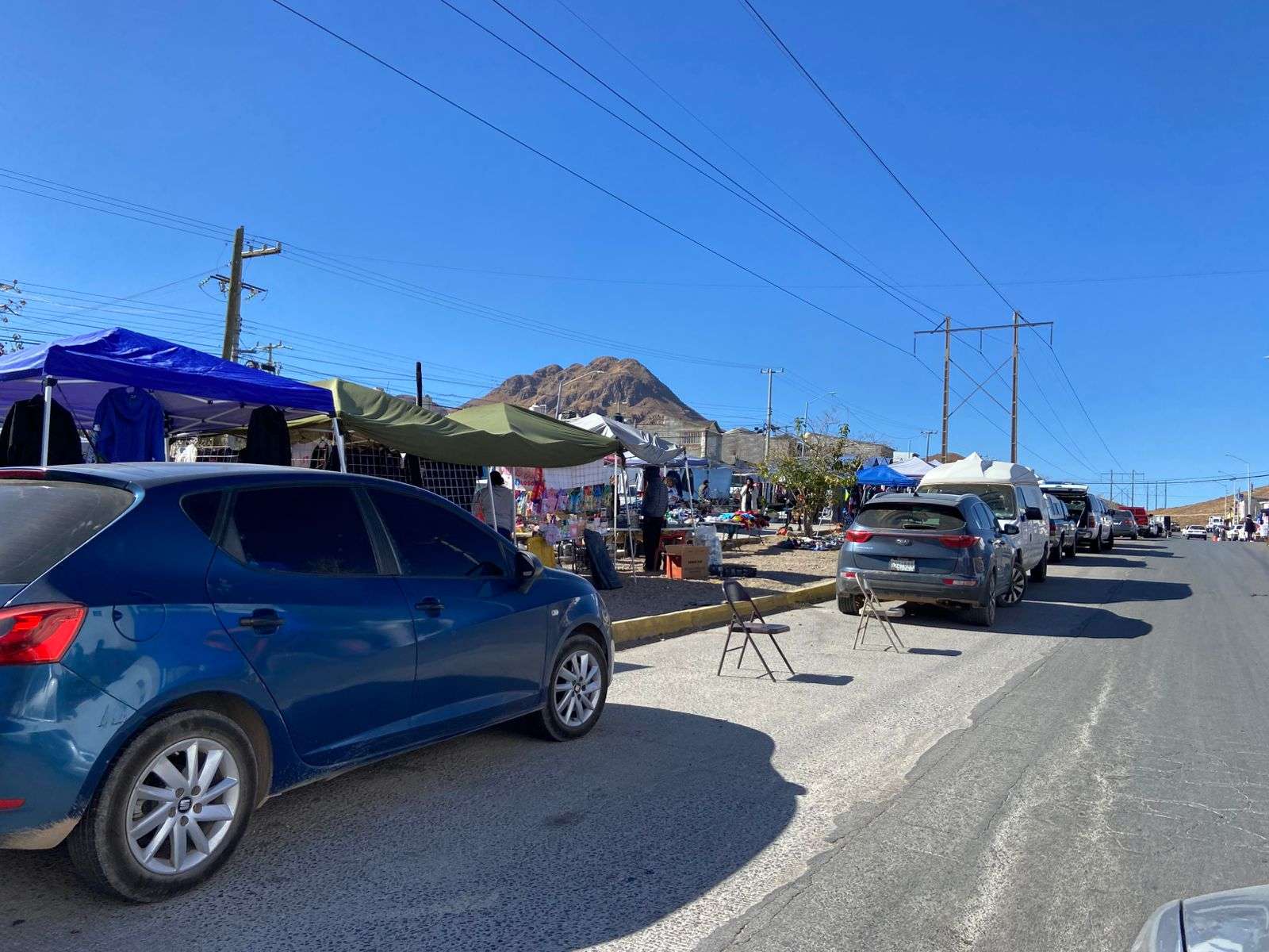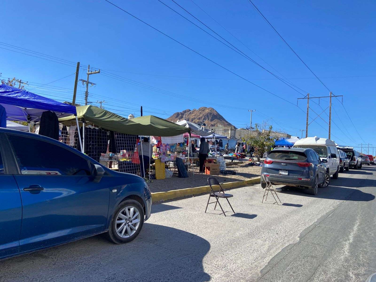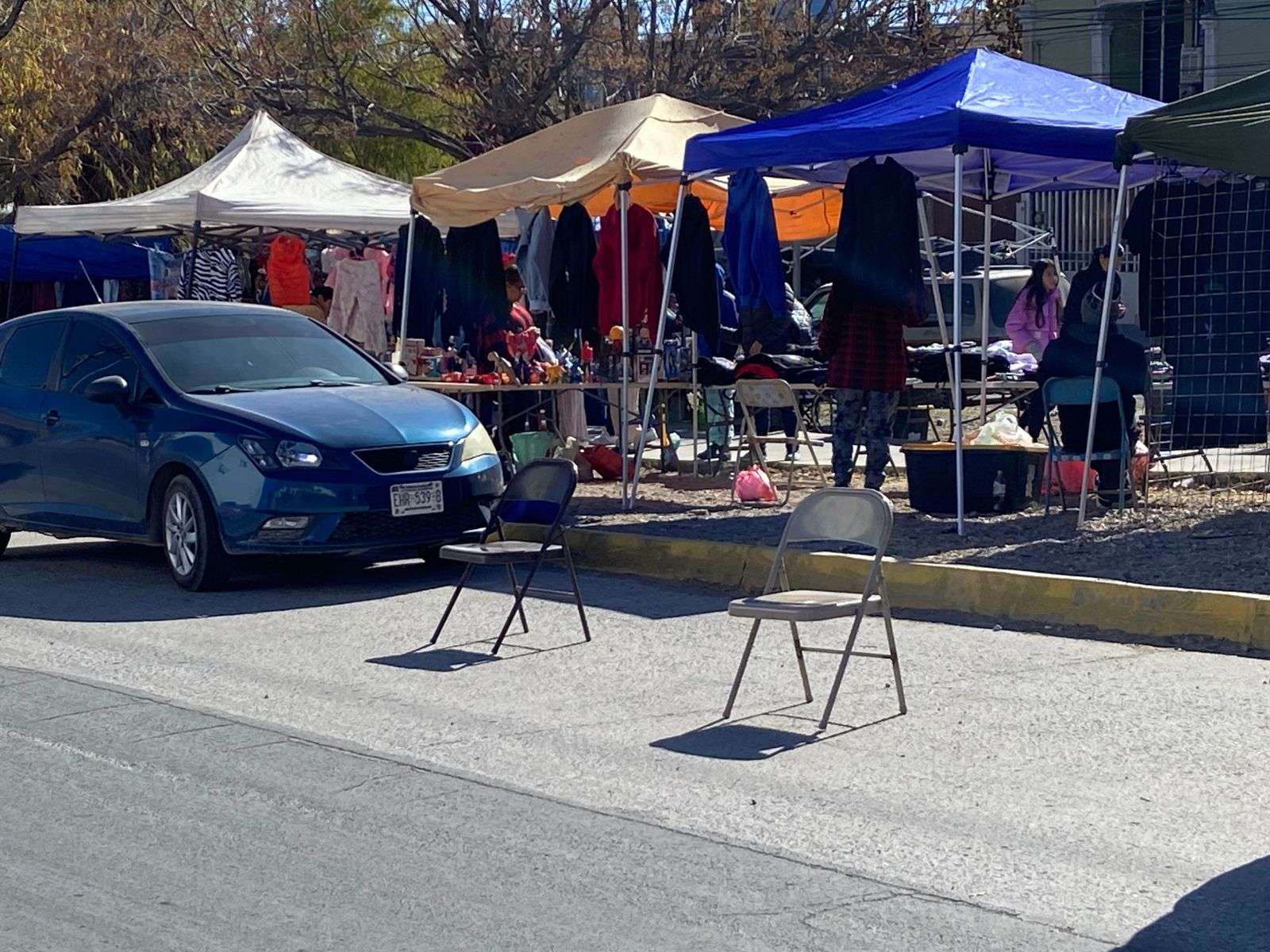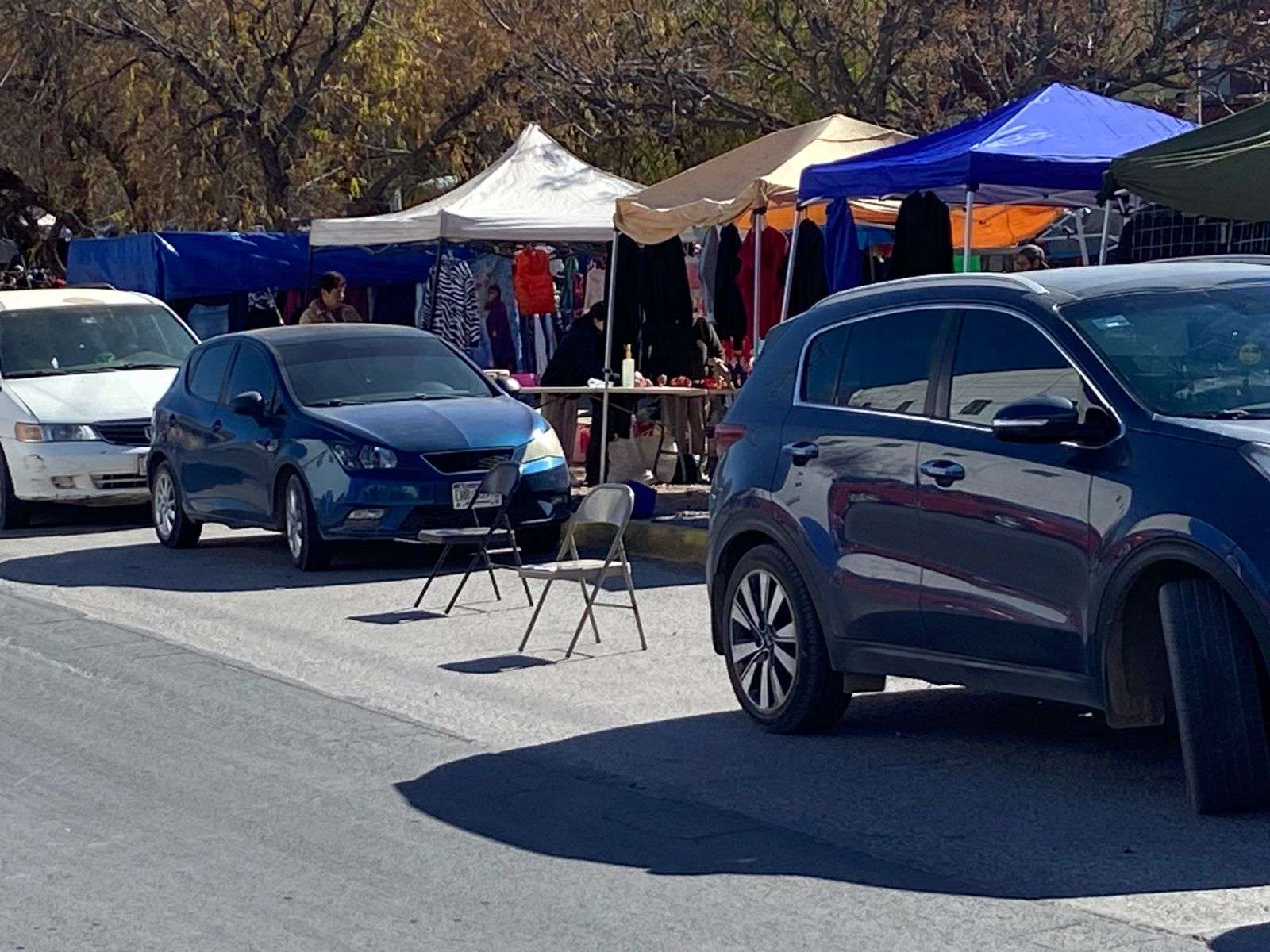 Chihuahua. - Compradores que acuden al tianguis de la colonia Mármol manifestaron su inconformidad ante la práctica de algunos comerciantes que apartan lugares de estacionamiento con objetos como sillas y cajas, impidiendo que los clientes puedan estacionarse cerca del lugar para realizar sus compras.