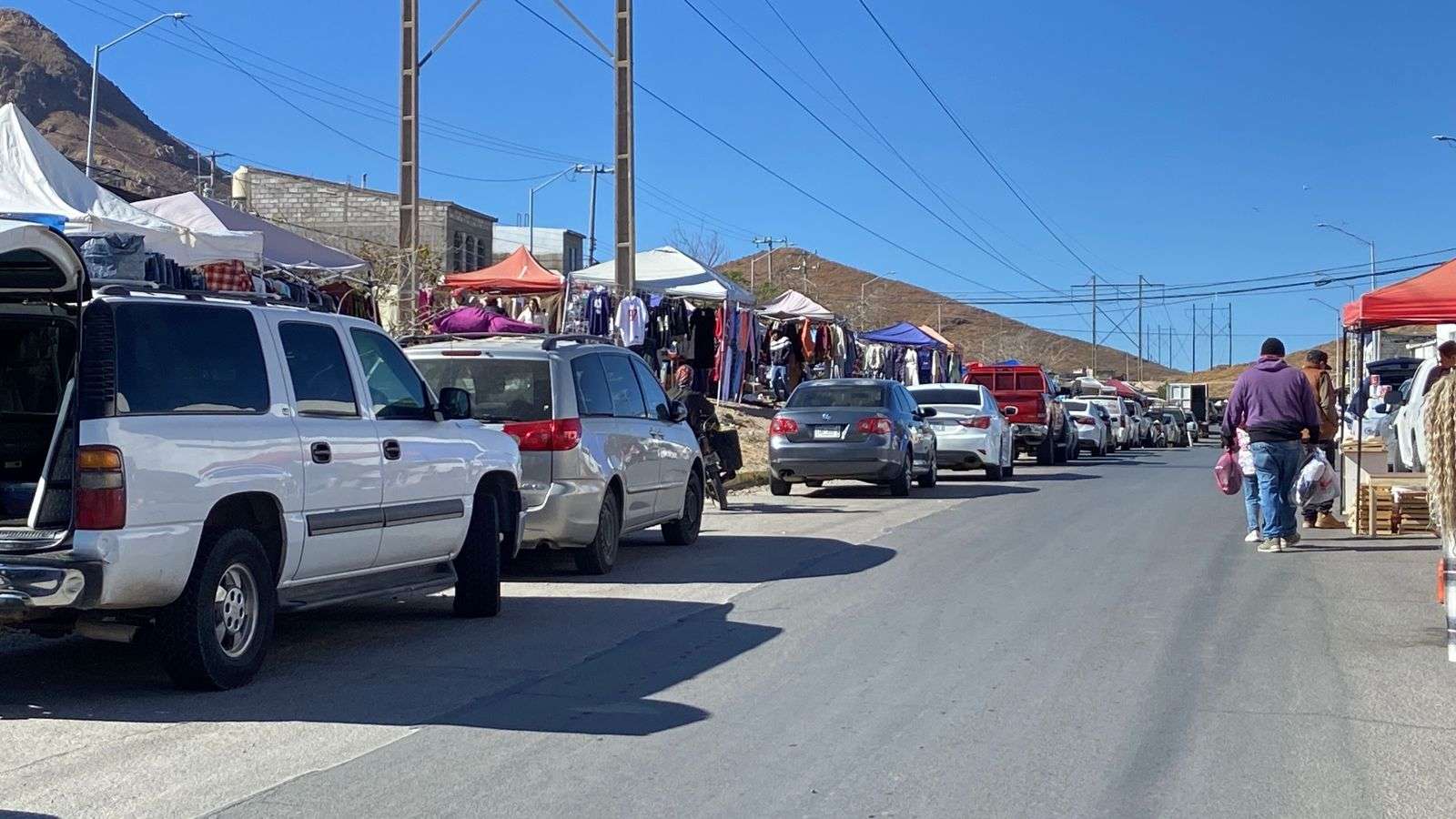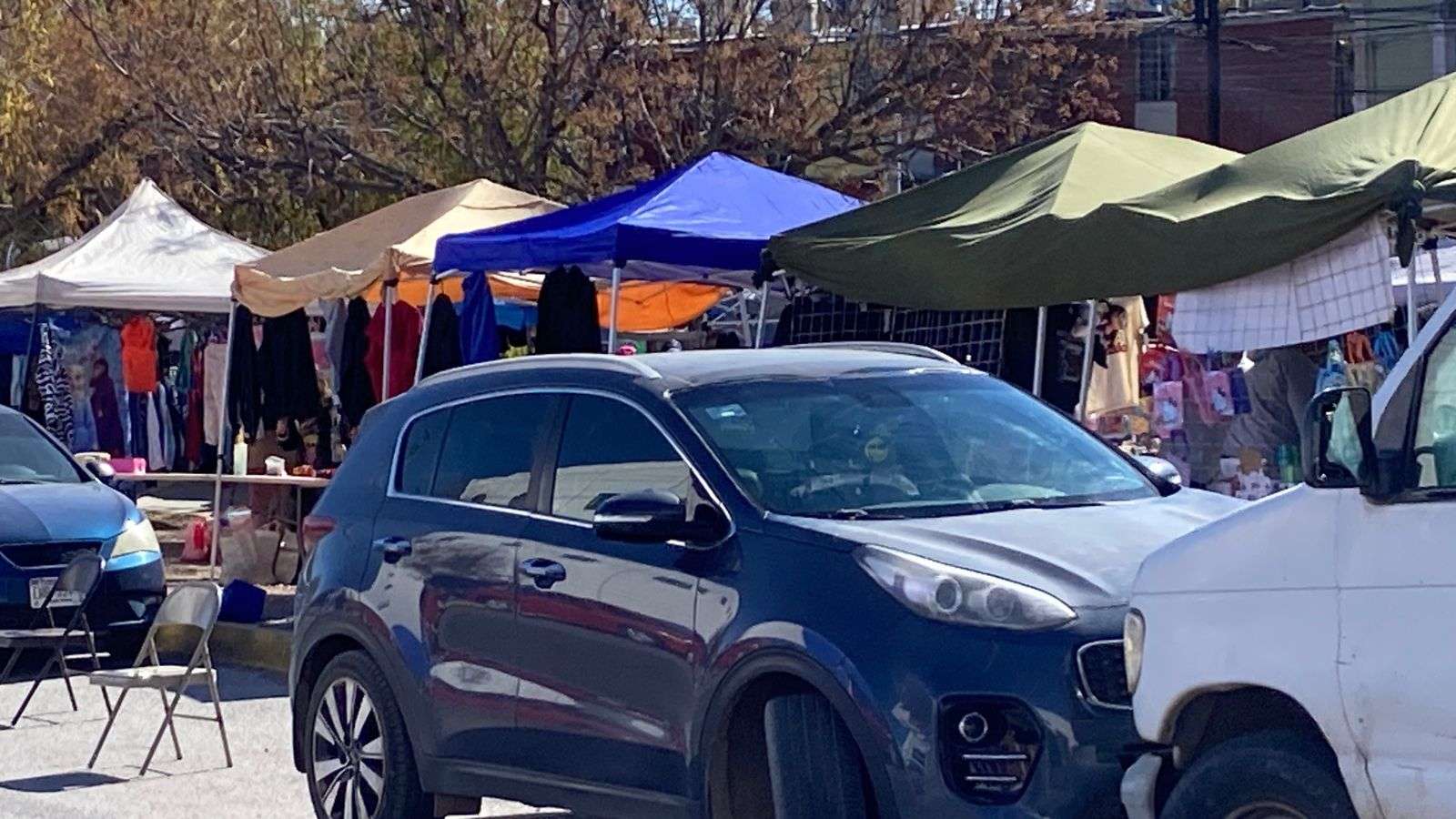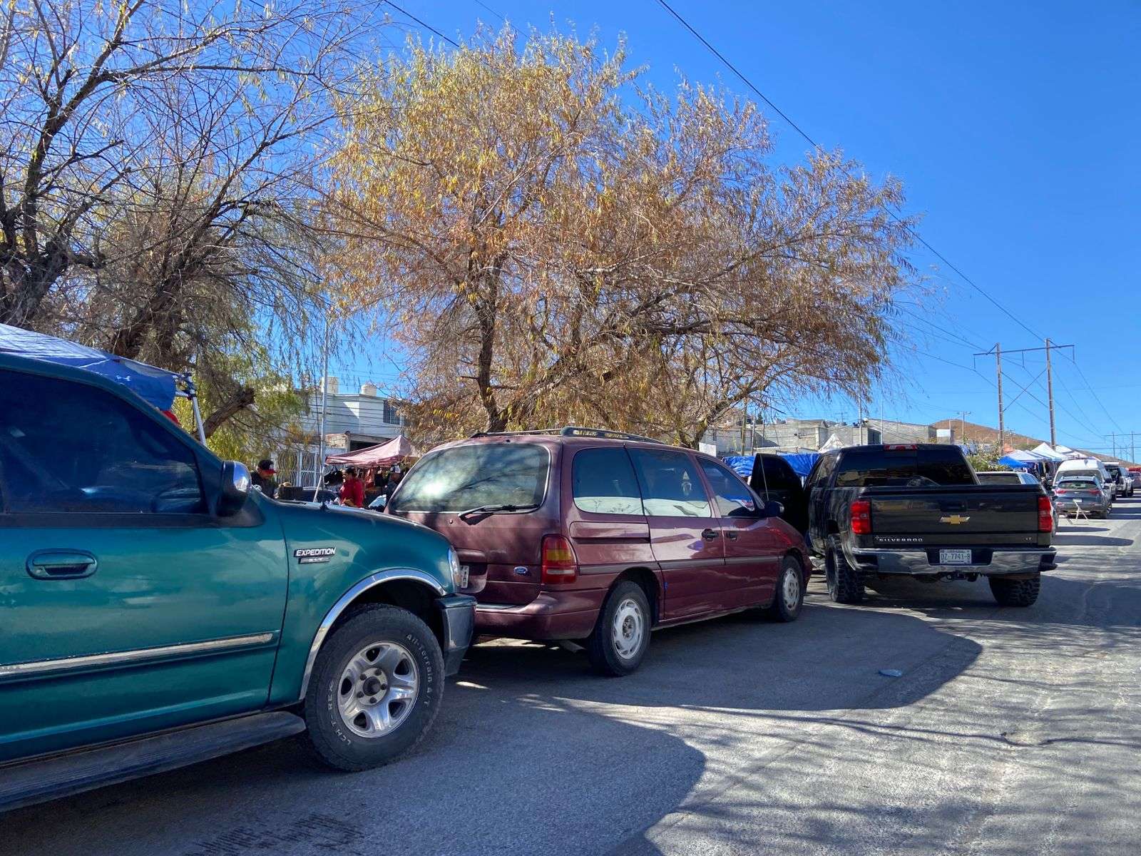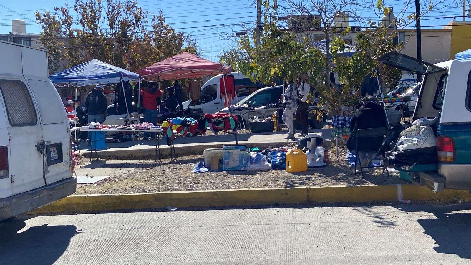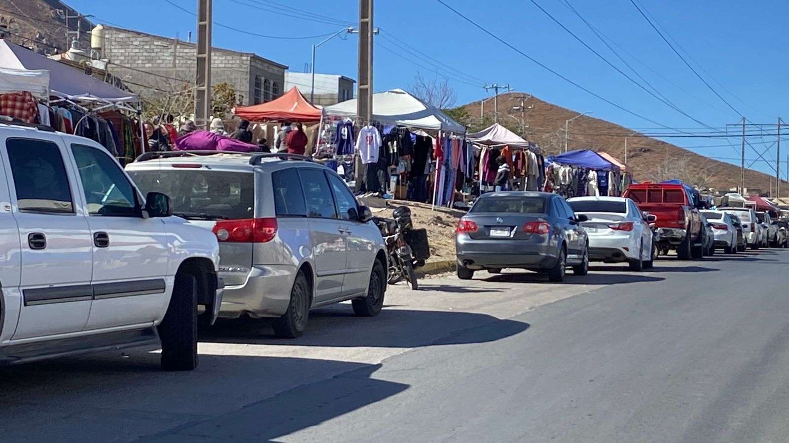 Chihuahua. - Compradores que acuden al tianguis de la colonia Mármol manifestaron su inconformidad ante la práctica de algunos comerciantes que apartan lugares de estacionamiento con objetos como sillas y cajas, impidiendo que los clientes puedan estacionarse cerca del lugar para realizar sus compras.